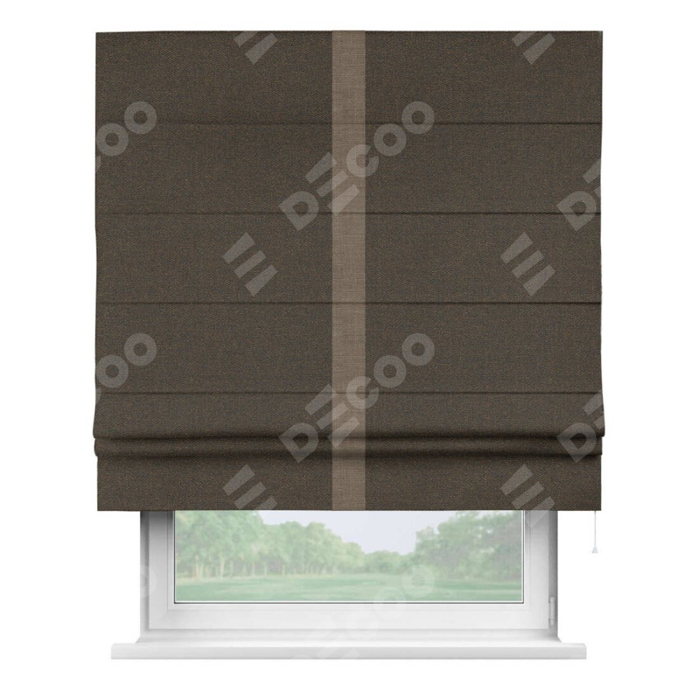 Римская штора «Кортин» с кантом Хайвэй, для проема, ткань лён темно-коричневый