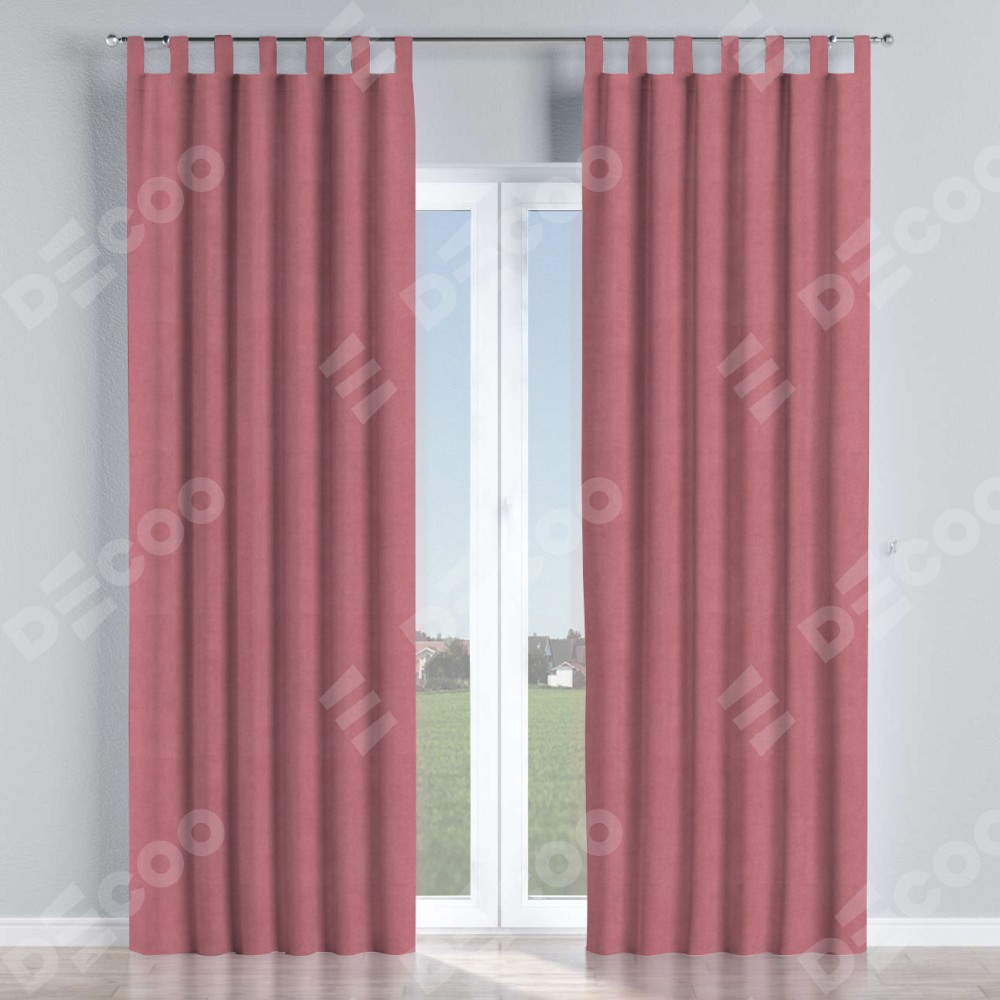 Комплект прямых штор, от производителя «Cortin», пошиты из ткани вельвет брусника, артикул ткани 85550. Данная модель пошита на петлях, комплектуется на выбор круглым карнизом и подходит для монтажа на стену или потолок. Прямые шторы на петлях шьются по стандарту с коэффициентом 1/2 (на 100 см. ширины проёма 200 см. ширины ткани), отличительным преимуществом данной модели является простой способ монтажа. Достаточно повесить ее на трубу и штора готова!