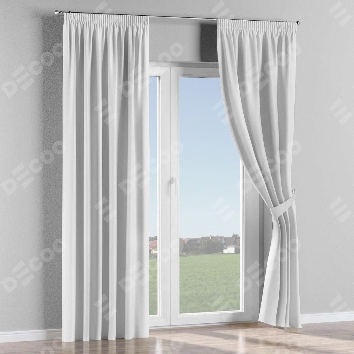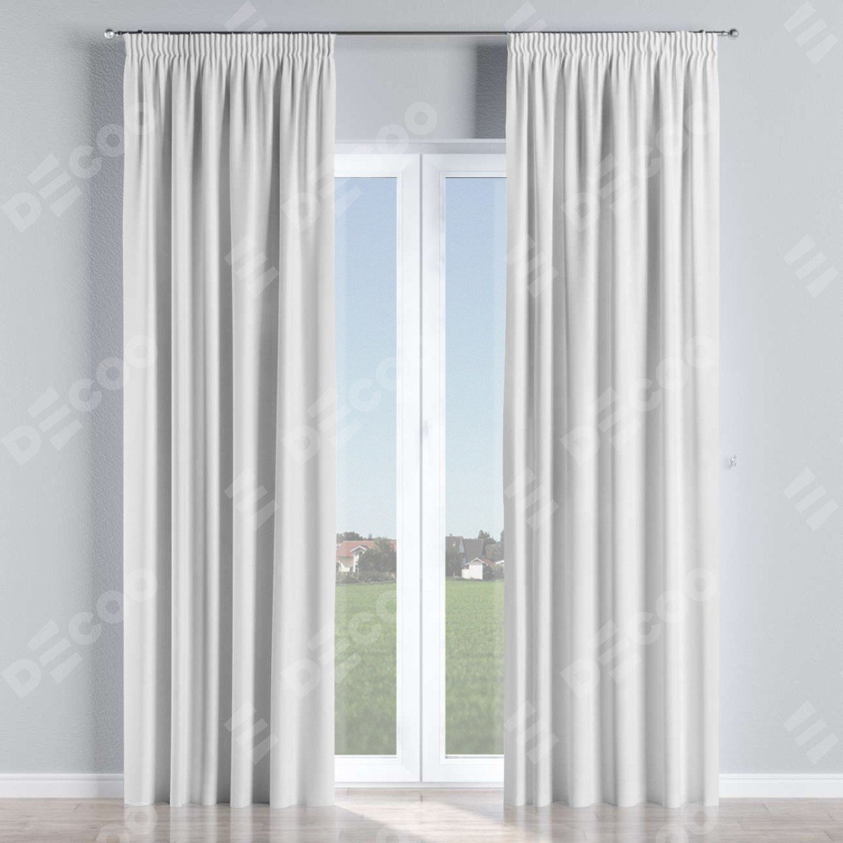 Комплект прямых штор, от производителя «Cortin», пошиты из ткани вельвет дымчато-белый, артикул ткани 85535. С изнаночной стороны в верхней части штор пристрачивается шторная лента с декоративными складками «Карандаш». Для создания элегантных складок прямые шторы шьются по стандарту с коэффициентом 1:2 (на 100 см. ширины проёма 200 см. ширины ткани).
