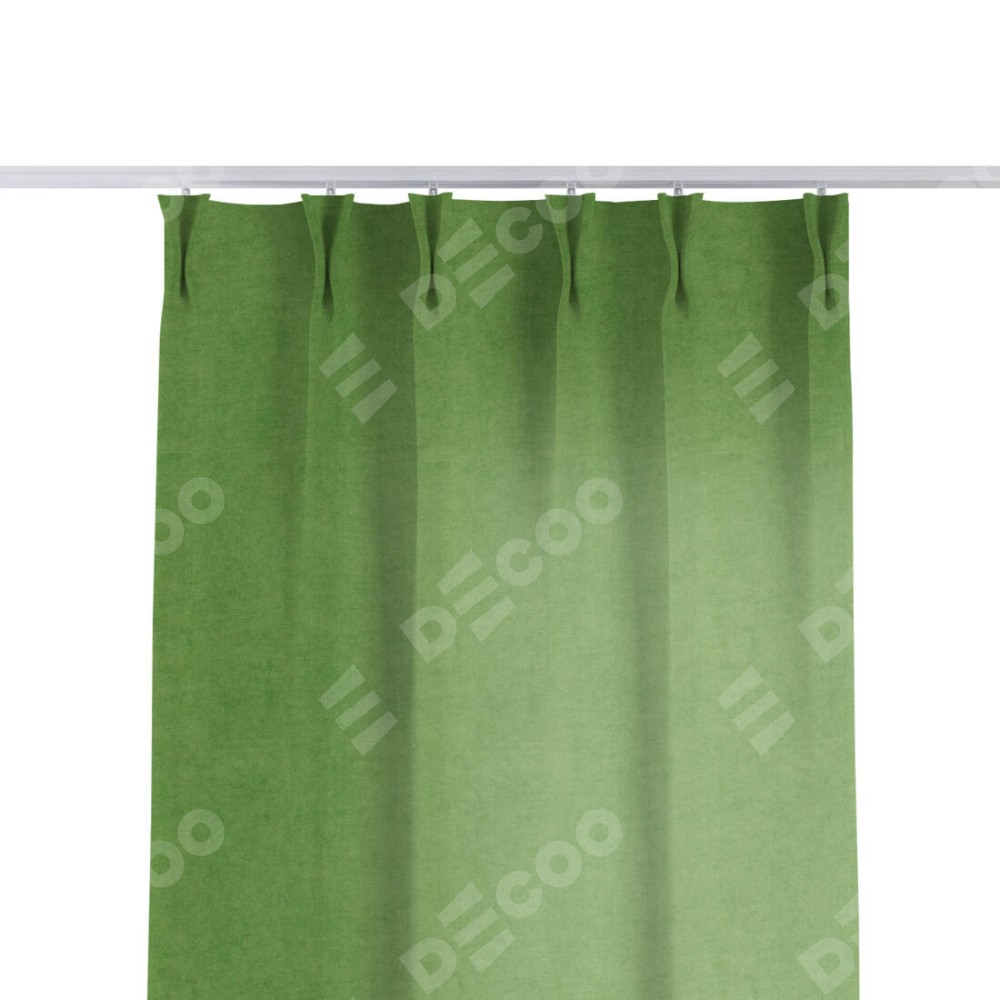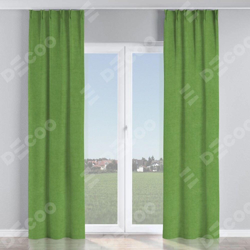 Комплект прямых штор, от производителя «Cortin», пошиты из ткани вельвет салатовый, артикул ткани 87072. С изнаночной стороны в верхней части штор пристрачивается шторная лента с декоративными складками «Кустик». Для создания элегантных складок прямые шторы шьются по стандарту с коэффициентом 1:2 (на 100 см. ширины проёма 200 см. ширины ткани).