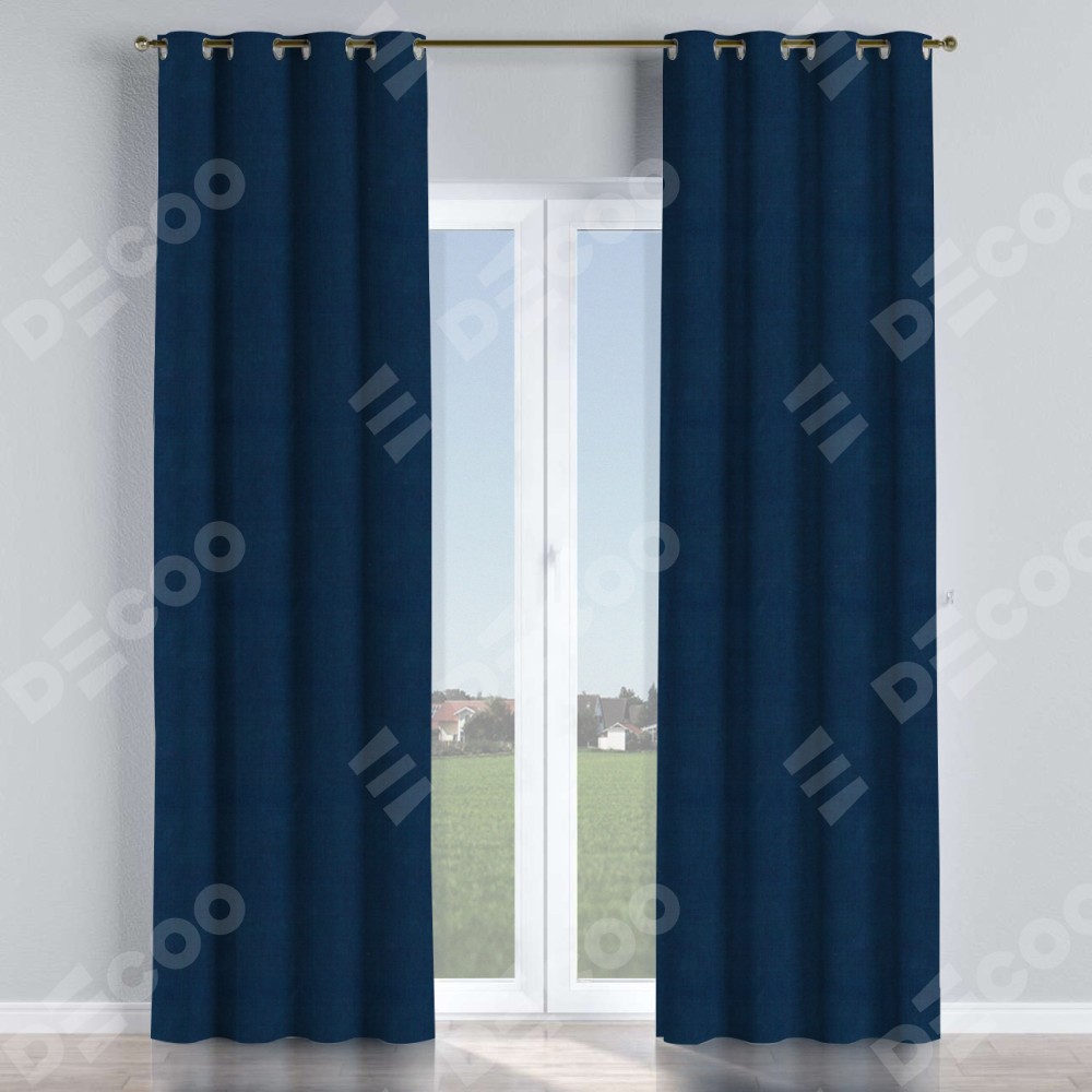Комплект прямых штор, от производителя «Cortin», пошиты из ткани вельвет тёмно-синий, артикул ткани 14152. Данная модель пошита на люверсах, комплектуется на выбор круглым карнизом и подходит для монтажа на стену или потолок. Прямые шторы на люверсах шьются по стандарту с коэффициентом 1/2 (на 100 см. ширины проёма 200 см. ширины ткани), отличительным преимуществом данной модели является простой способ монтажа. Достаточно повесить ее на трубу и штора готова!