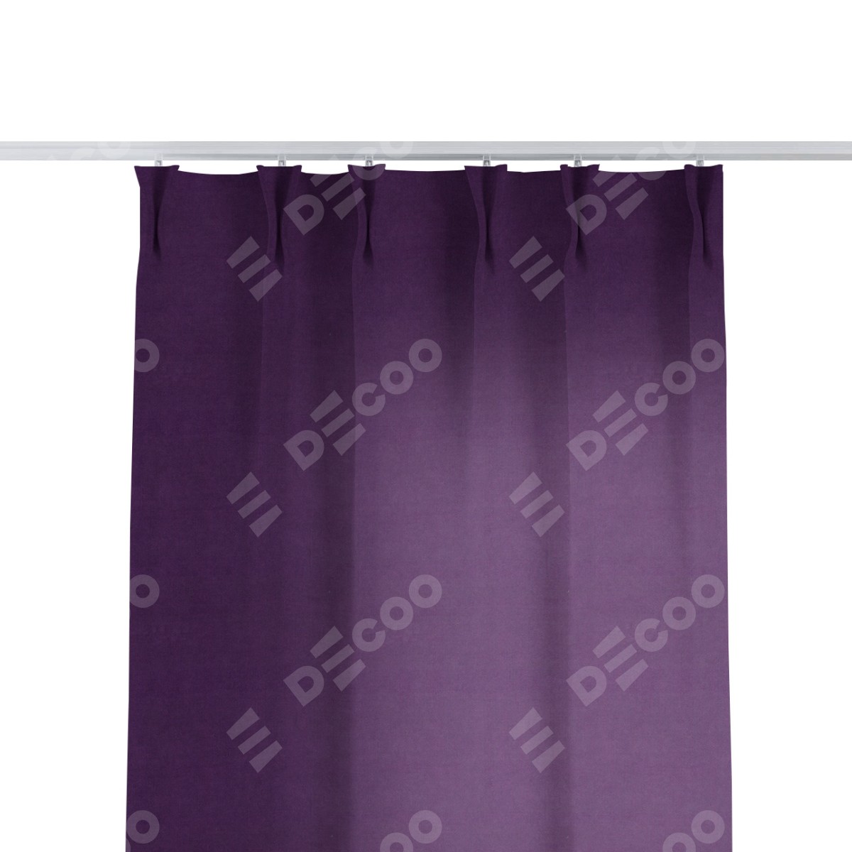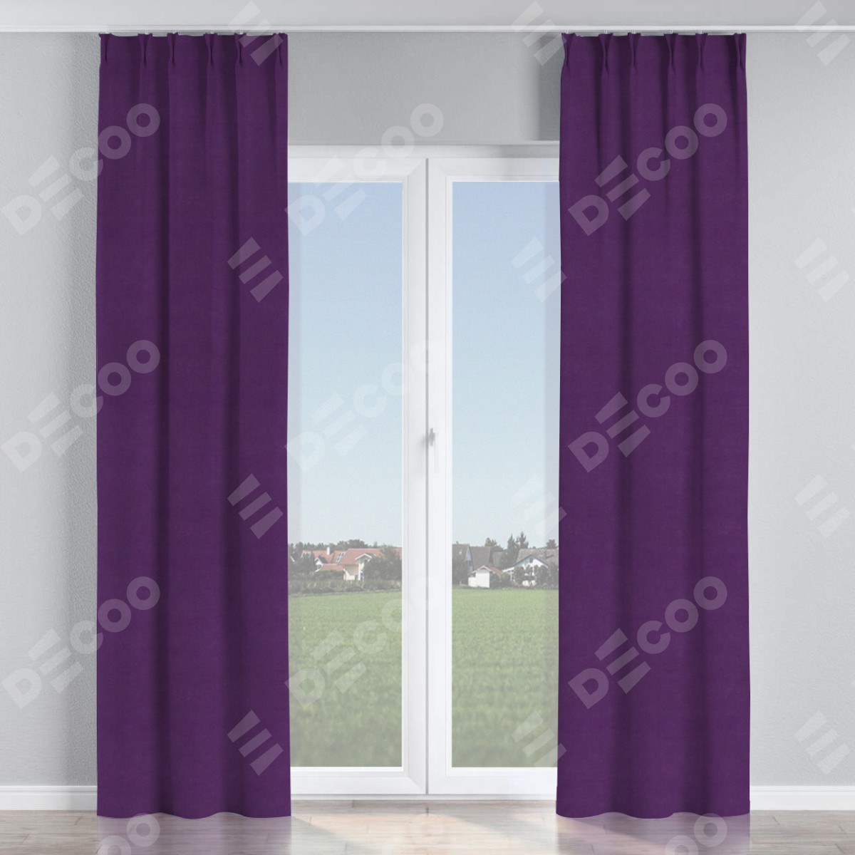 Комплект прямых штор, от производителя «Cortin», пошиты из ткани вельвет тёмно-фиолетовый, артикул ткани 17753. С изнаночной стороны в верхней части штор пристрачивается шторная лента с декоративными складками «Кустик». Для создания элегантных складок прямые шторы шьются по стандарту с коэффициентом 1:2 (на 100 см. ширины проёма 200 см. ширины ткани).