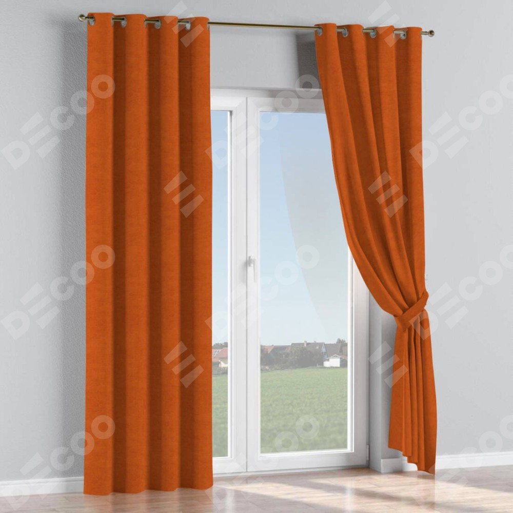 Комплект прямых штор, от производителя «Cortin», пошиты из ткани вельвет терракотовый, артикул ткани 85548. Данная модель пошита на люверсах, комплектуется на выбор круглым карнизом и подходит для монтажа на стену или потолок. Прямые шторы на люверсах шьются по стандарту с коэффициентом 1/2 (на 100 см. ширины проёма 200 см. ширины ткани), отличительным преимуществом данной модели является простой способ монтажа. Достаточно повесить ее на трубу и штора готова!