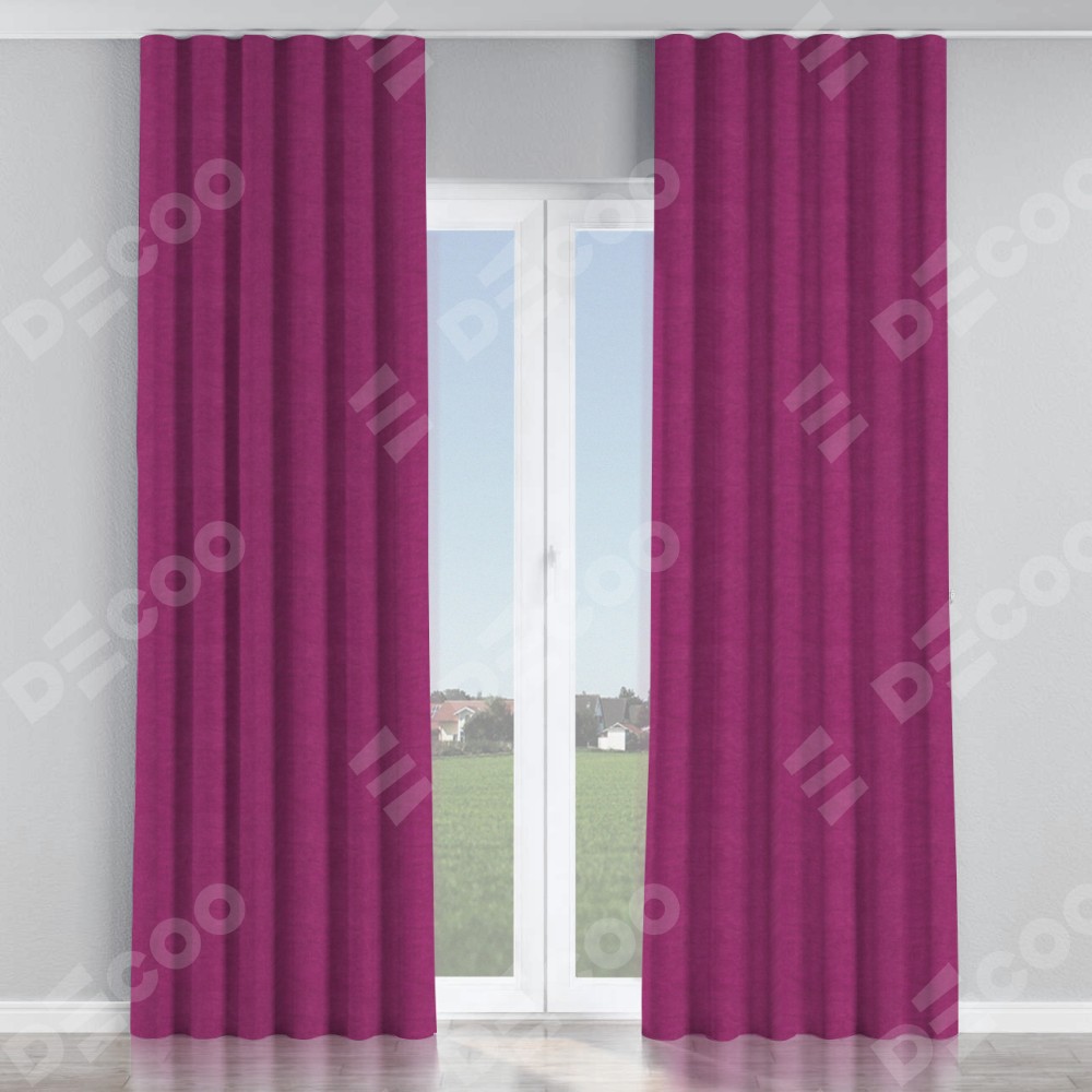 Комплект прямых штор, от производителя «Cortin», пошиты из ткани вельвет фиолетовый, артикул ткани 85552. С изнаночной стороны в верхней части штор пристрачивается шторная лента с декоративными складками «Волна». Для создания элегантных складок прямые шторы шьются по стандарту с коэффициентом 1:2 (на 100 см. ширины проёма 200 см. ширины ткани).