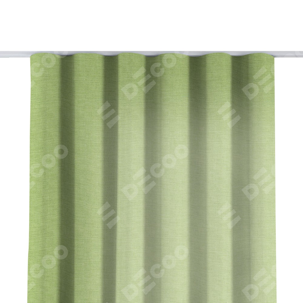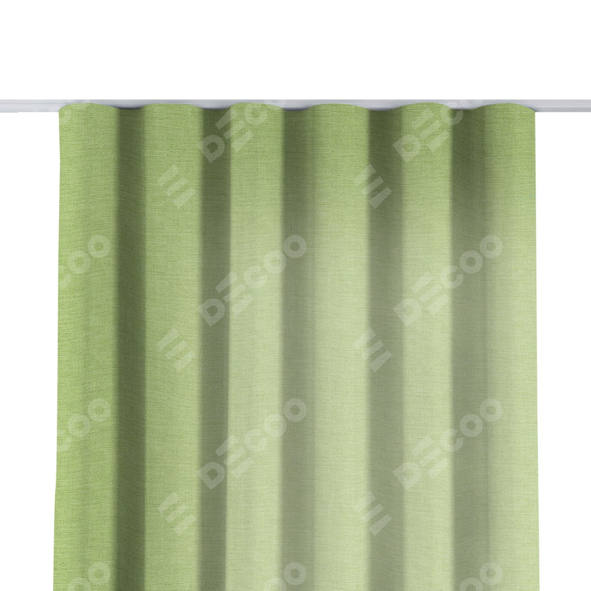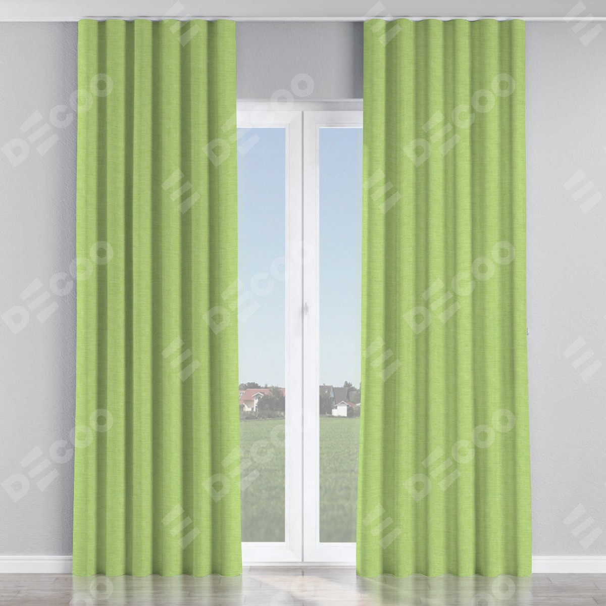 Комплект прямых штор, от производителя «Cortin», пошиты из ткани лён зелёный, артикул ткани 85906. С изнаночной стороны в верхней части штор пристрачивается шторная лента с декоративными складками «Волна». Для создания элегантных складок прямые шторы шьются по стандарту с коэффициентом 1:2 (на 100 см. ширины проёма 200 см. ширины ткани).