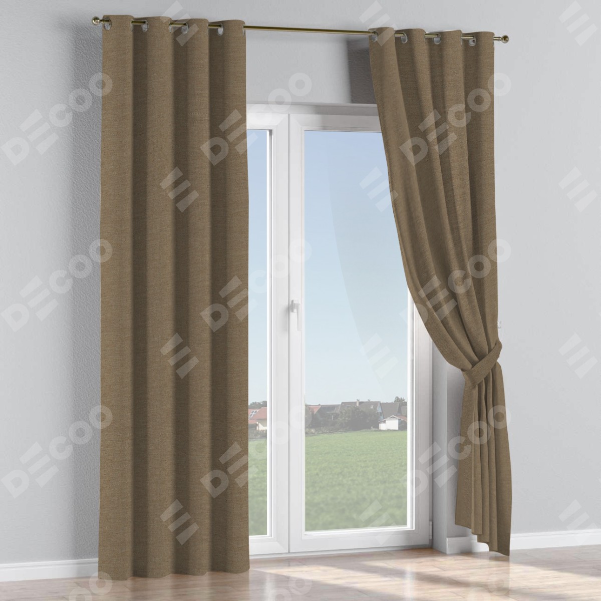 Комплект прямых штор, от производителя «Cortin», пошиты из ткани лён светло-коричневый, артикул ткани 53434. Данная модель пошита на люверсах, комплектуется на выбор круглым карнизом и подходит для монтажа на стену или потолок. Прямые шторы на люверсах шьются по стандарту с коэффициентом 1/2 (на 100 см. ширины проёма 200 см. ширины ткани), отличительным преимуществом данной модели является простой способ монтажа. Достаточно повесить ее на трубу и штора готова!