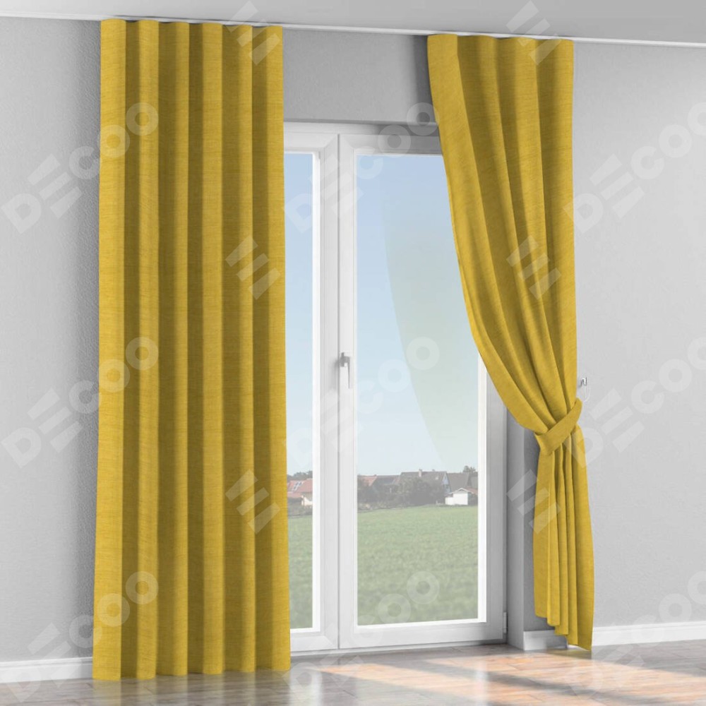 Комплект прямых штор, от производителя «Cortin», пошиты из ткани лён светло-салатовый, артикул ткани 53438. С изнаночной стороны в верхней части штор пристрачивается шторная лента с декоративными складками «Волна». Для создания элегантных складок прямые шторы шьются по стандарту с коэффициентом 1:2 (на 100 см. ширины проёма 200 см. ширины ткани).