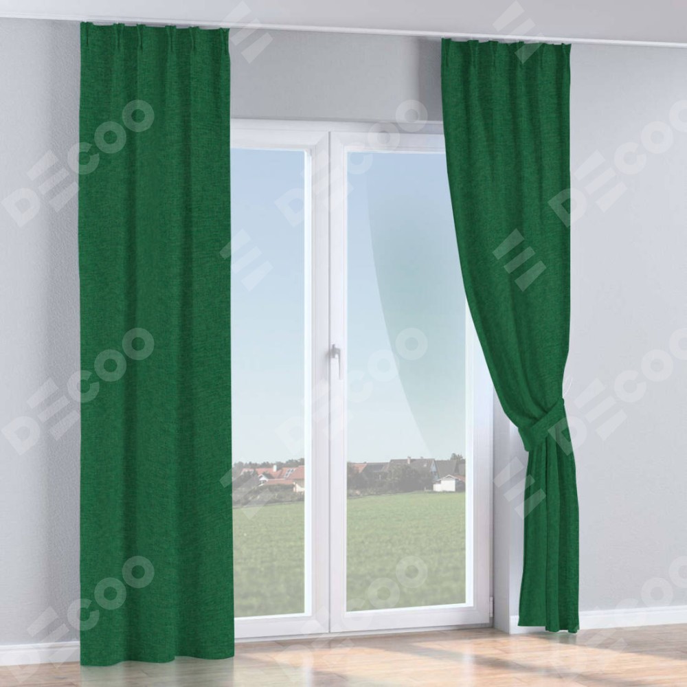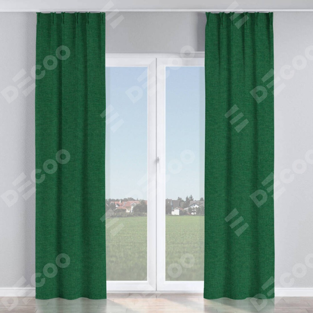 Комплект прямых штор, от производителя «Cortin», пошиты из ткани лён серо-зелёный, артикул ткани 63740. С изнаночной стороны в верхней части штор пристрачивается шторная лента с декоративными складками «Кустик». Для создания элегантных складок прямые шторы шьются по стандарту с коэффициентом 1:2 (на 100 см. ширины проёма 200 см. ширины ткани).