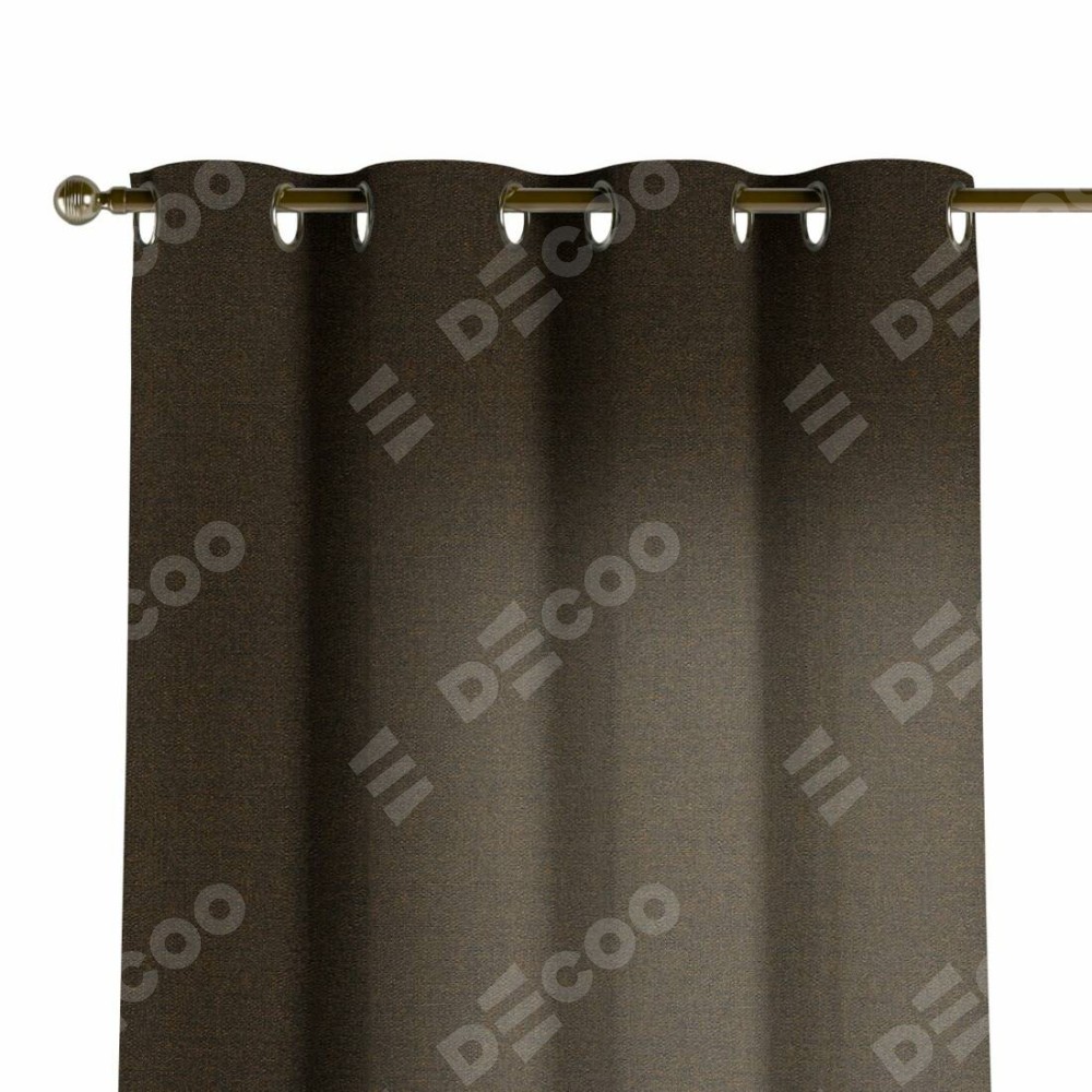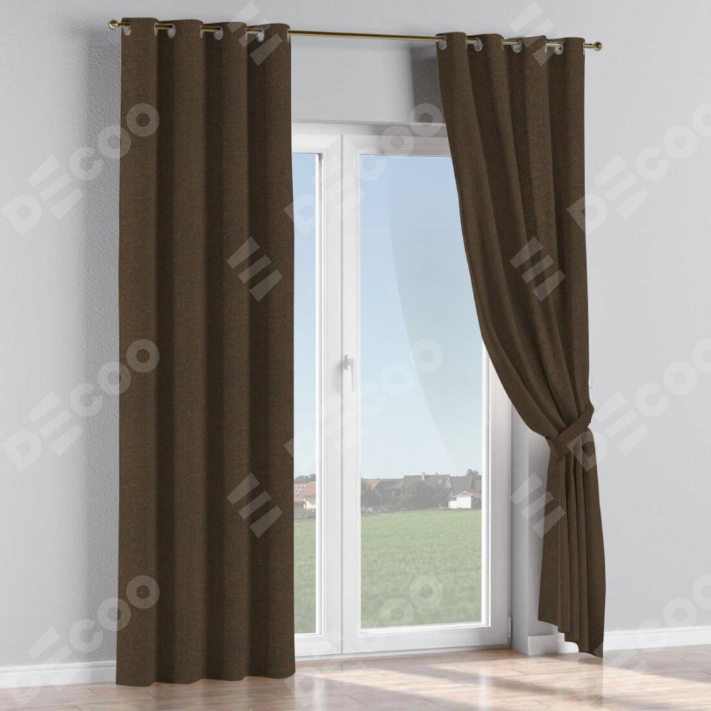 Комплект прямых штор, от производителя «Cortin», пошиты из ткани лён тёмно-коричневый, артикул ткани 53444. Данная модель пошита на люверсах, комплектуется на выбор круглым карнизом и подходит для монтажа на стену или потолок. Прямые шторы на люверсах шьются по стандарту с коэффициентом 1/2 (на 100 см. ширины проёма 200 см. ширины ткани), отличительным преимуществом данной модели является простой способ монтажа. Достаточно повесить ее на трубу и штора готова!
