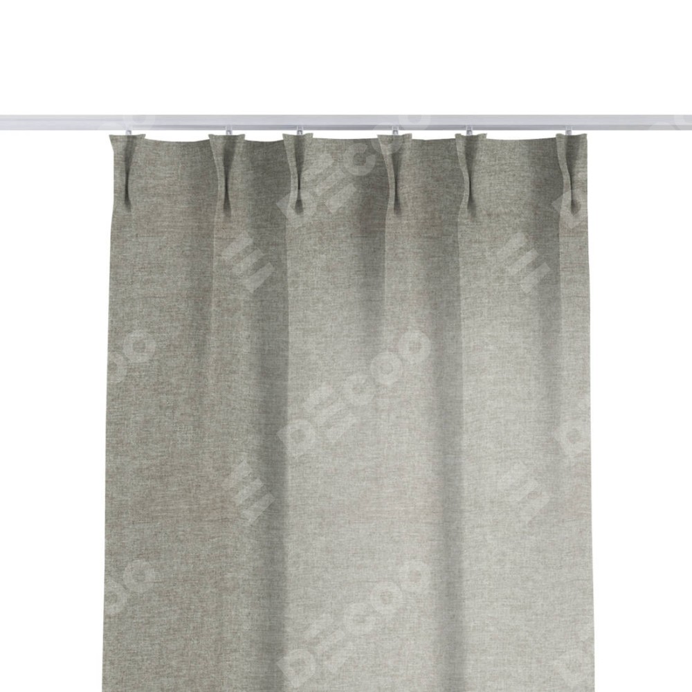 Комплект прямых штор, от производителя «Cortin», пошиты из ткани лён кашемир серый, артикул ткани 17208. С изнаночной стороны в верхней части штор пристрачивается шторная лента с декоративными складками «Кустик». Для создания элегантных складок прямые шторы шьются по стандарту с коэффициентом 1:2 (на 100 см. ширины проёма 200 см. ширины ткани).