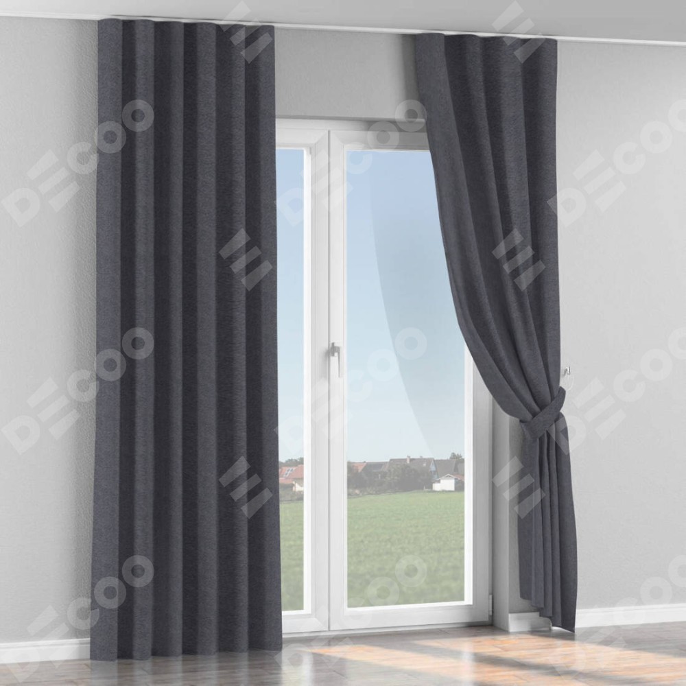 Комплект прямых штор, от производителя «Cortin», пошиты из ткани софт однотонный графит, артикул ткани 19316. С изнаночной стороны в верхней части штор пристрачивается шторная лента с декоративными складками «Волна». Для создания элегантных складок прямые шторы шьются по стандарту с коэффициентом 1:2 (на 100 см. ширины проёма 200 см. ширины ткани).