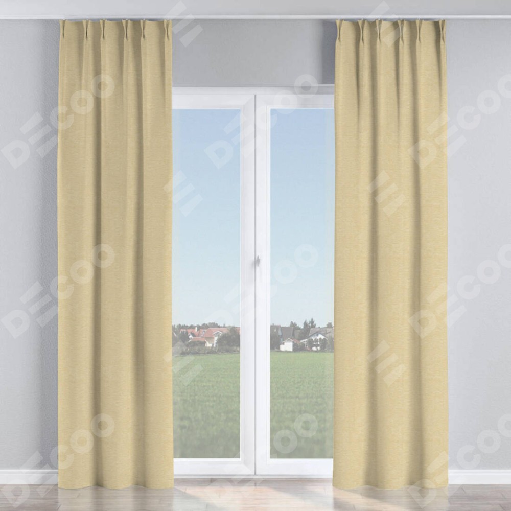 Комплект прямых штор, от производителя «Cortin», пошиты из ткани софт однотонный светло-бежевый, артикул ткани 54426. С изнаночной стороны в верхней части штор пристрачивается шторная лента с декоративными складками «Кустик». Для создания элегантных складок прямые шторы шьются по стандарту с коэффициентом 1:2 (на 100 см. ширины проёма 200 см. ширины ткани).