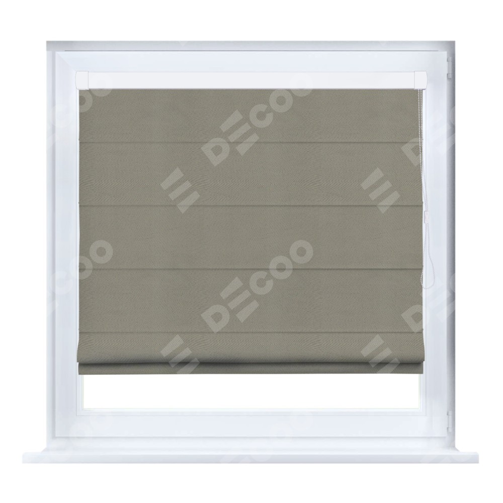 Римская штора кассетного типа, производителя «Cortin», устанавливается только на пластиковые окна и прилегает к стеклопакету, пошита из ткани блэкаут однотонный бежево-серый, артикул 00004.