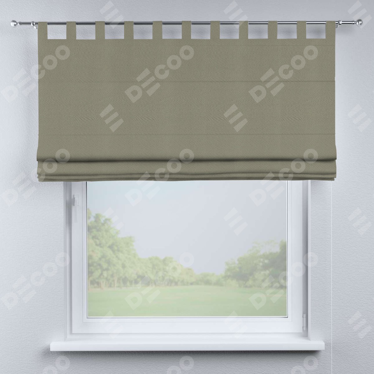 Римская штора производителя «Cortin», используется для проёма, пошита из ткани блэкаут однотонный серо-зелёный, артикул ткани 29568. Данная модель пошита на петлях, комплектуется на выбор круглым карнизом и подходит для монтажа на стену. Римская штора на петлях имеет простую систему регулировки высоты, отличительным преимуществом данной модели является простой способ монтажа. Достаточно повесить ее на трубу и штора готова!