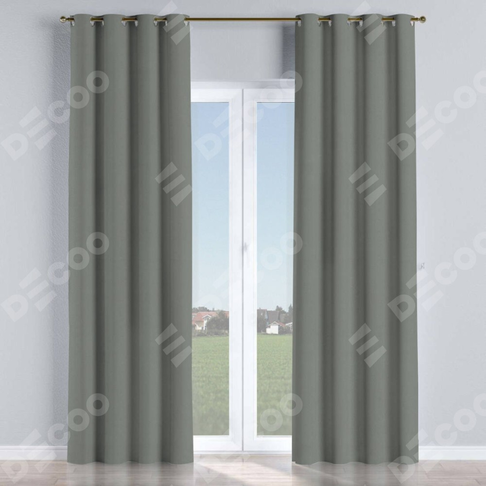 Комплект прямых штор, от производителя «Cortin», пошиты из ткани блэкаут однотонный тёмно-серый, артикул ткани 18077. Данная модель пошита на люверсах, комплектуется на выбор круглым карнизом и подходит для монтажа на стену или потолок. Прямые шторы на люверсах шьются по стандарту с коэффициентом 1/2 (на 100 см. ширины проёма 200 см. ширины ткани), отличительным преимуществом данной модели является простой способ монтажа. Достаточно повесить ее на трубу и штора готова!