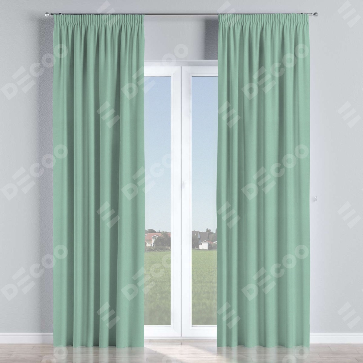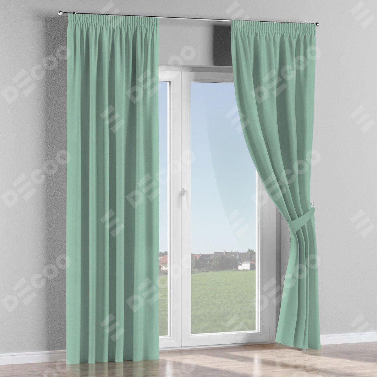 Комплект прямых штор, от производителя «Cortin», пошиты из ткани блэкаут однотонный ментоловый, артикул ткани 29584. С изнаночной стороны в верхней части штор пристрачивается шторная лента с декоративными складками «Карандаш». Для создания элегантных складок прямые шторы шьются по стандарту с коэффициентом 1:2 (на 100 см. ширины проёма 200 см. ширины ткани).