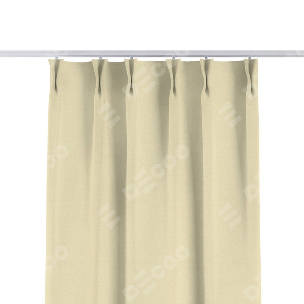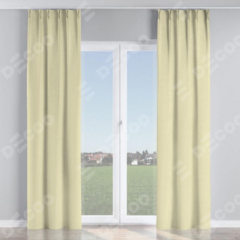 Комплект прямых штор, от производителя «Cortin», пошиты из ткани блэкаут однотонный бежевый, артикул ткани 88283. С изнаночной стороны в верхней части штор пристрачивается шторная лента с декоративными складками «Кустик». Для создания элегантных складок прямые шторы шьются по стандарту с коэффициентом 1:2 (на 100 см. ширины проёма 200 см. ширины ткани).