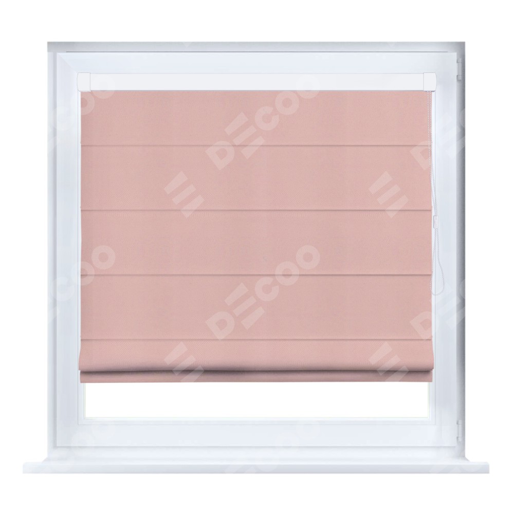 Римская штора кассетного типа, производителя «Cortin», устанавливается только на пластиковые окна и прилегает к стеклопакету, пошита из ткани pipa блэкаут розовый, артикул 12091.