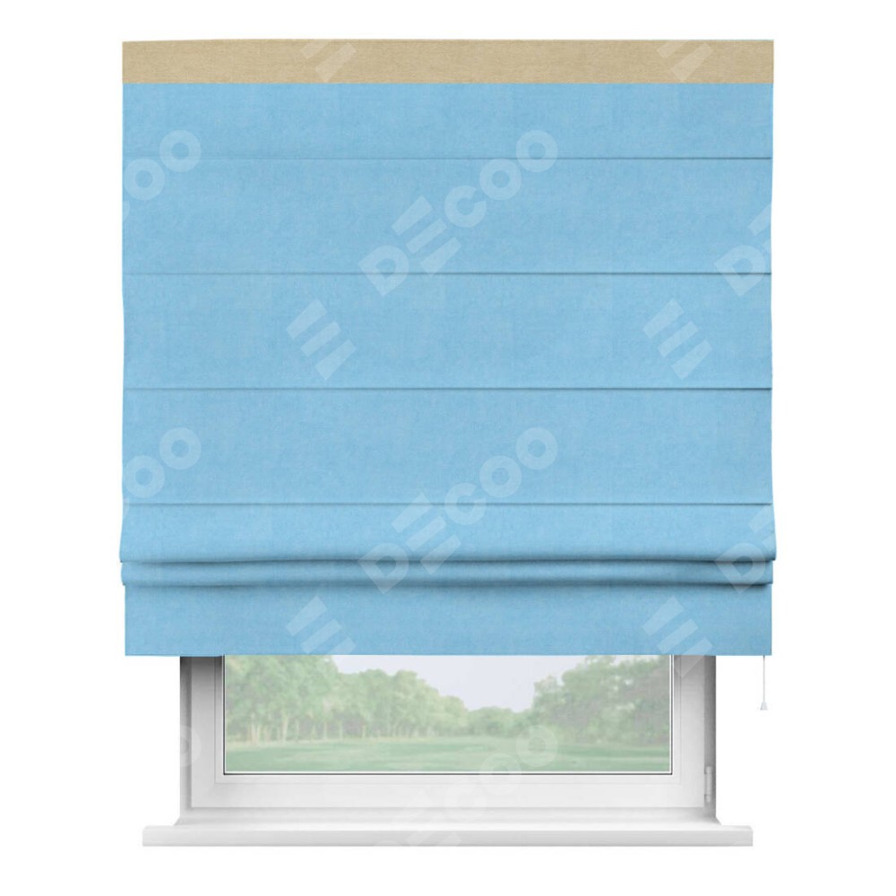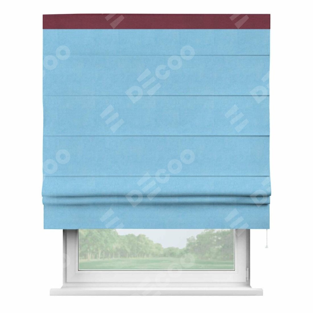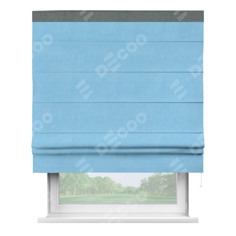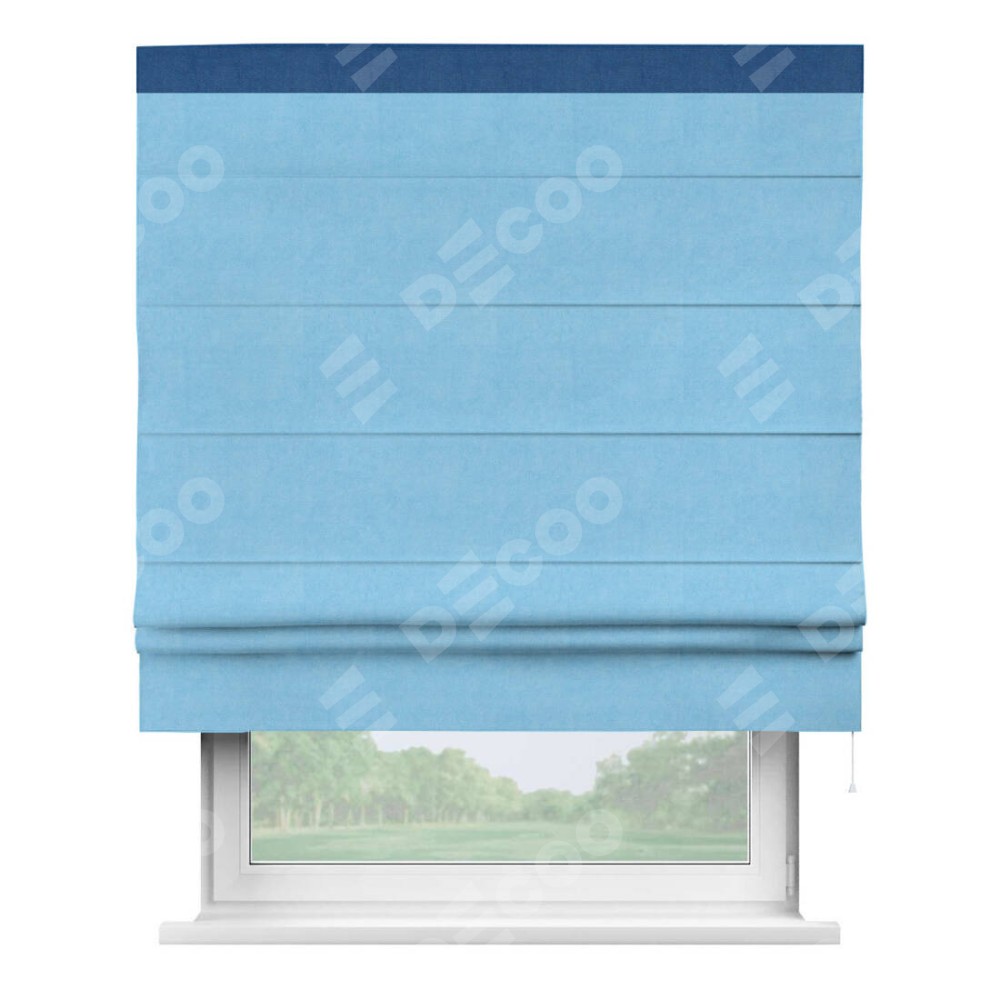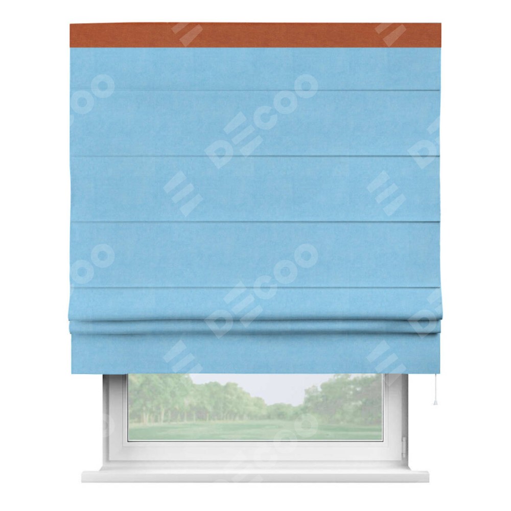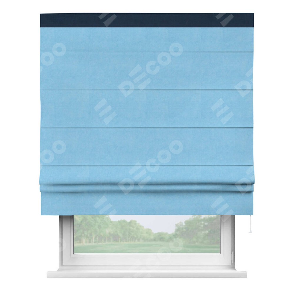 Римская штора «Кортин» с кантом Кинг, для проема, ткань вельвет голубой