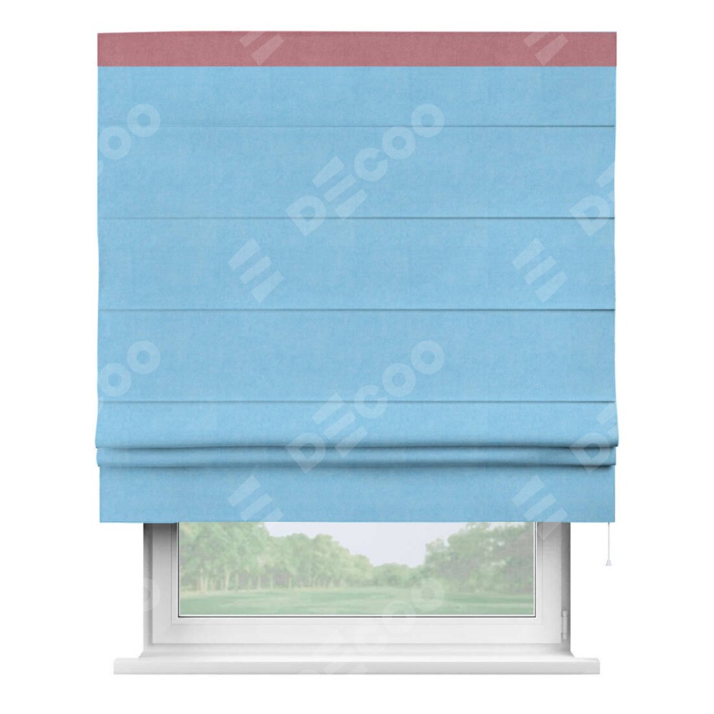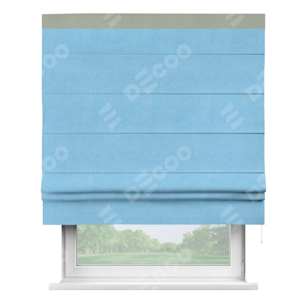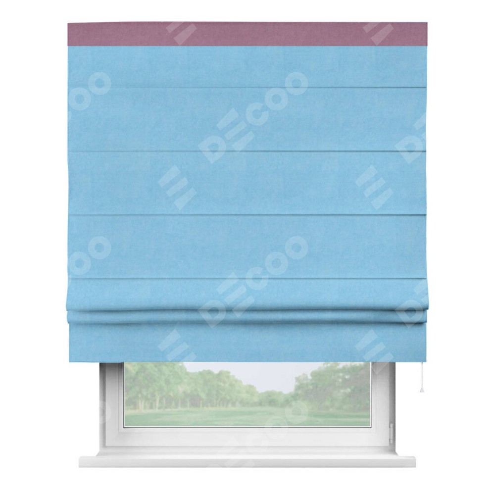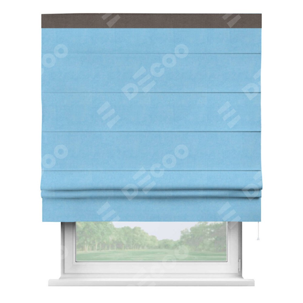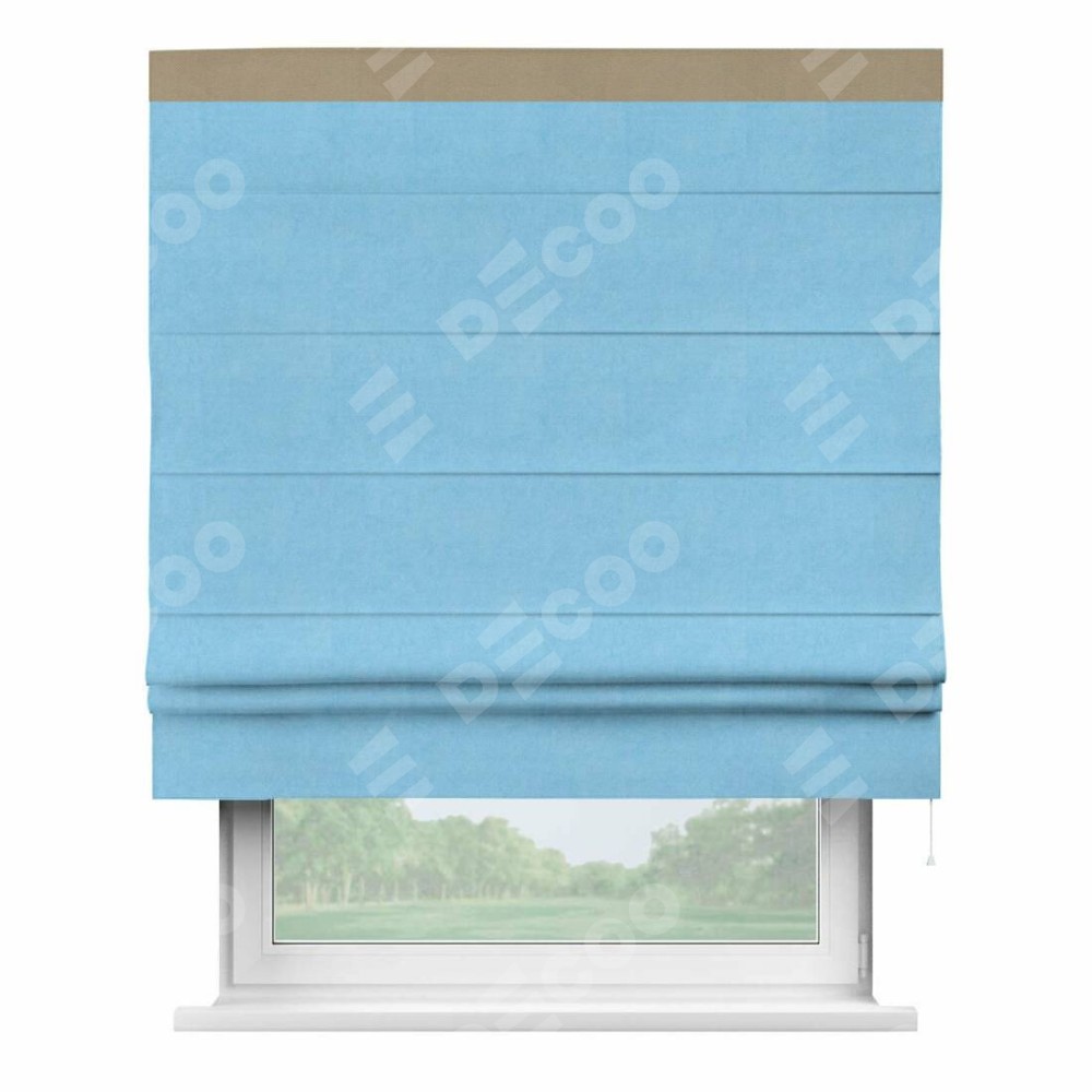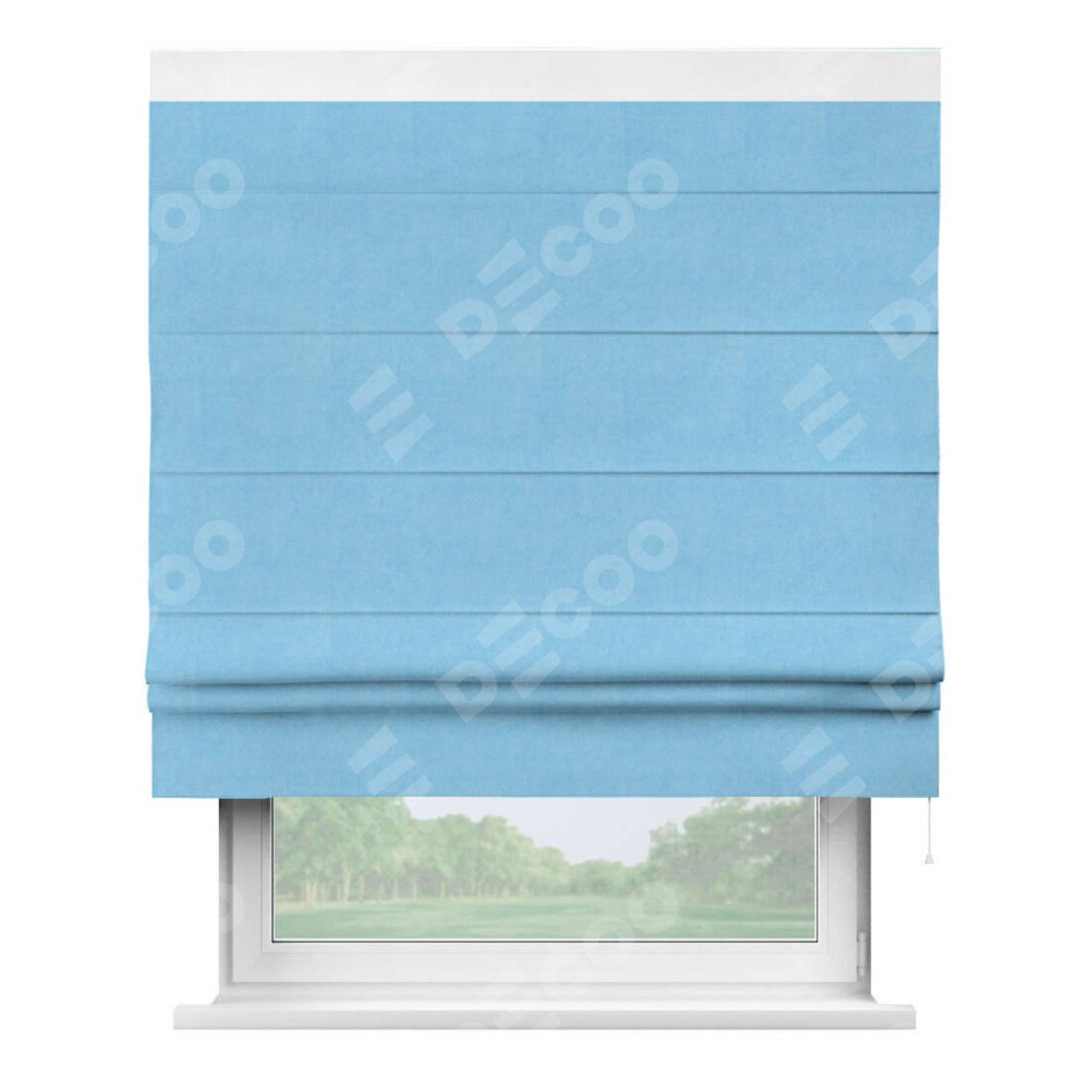Римская штора «Кортин» с кантом Кинг, для проема, ткань вельвет голубой