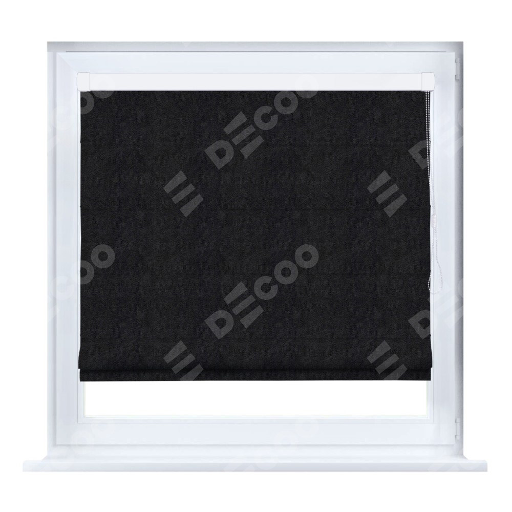 Римская штора кассетного типа, производителя «Cortin», устанавливается только на пластиковые окна и прилегает к стеклопакету, пошита из ткани cotton блэкаут тёмно-серый, артикул 35282.