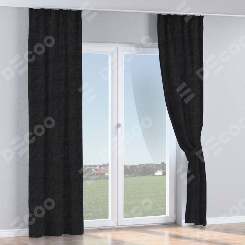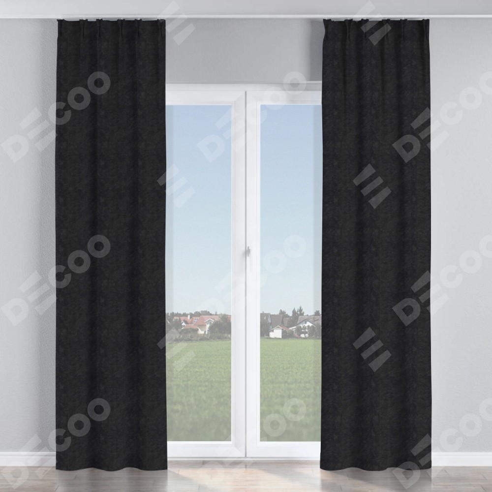 Комплект прямых штор, от производителя «Cortin», пошиты из ткани cotton блэкаут тёмно-серый, артикул ткани 35282. С изнаночной стороны в верхней части штор пристрачивается шторная лента с декоративными складками «Кустик». Для создания элегантных складок прямые шторы шьются по стандарту с коэффициентом 1:2 (на 100 см. ширины проёма 200 см. ширины ткани).