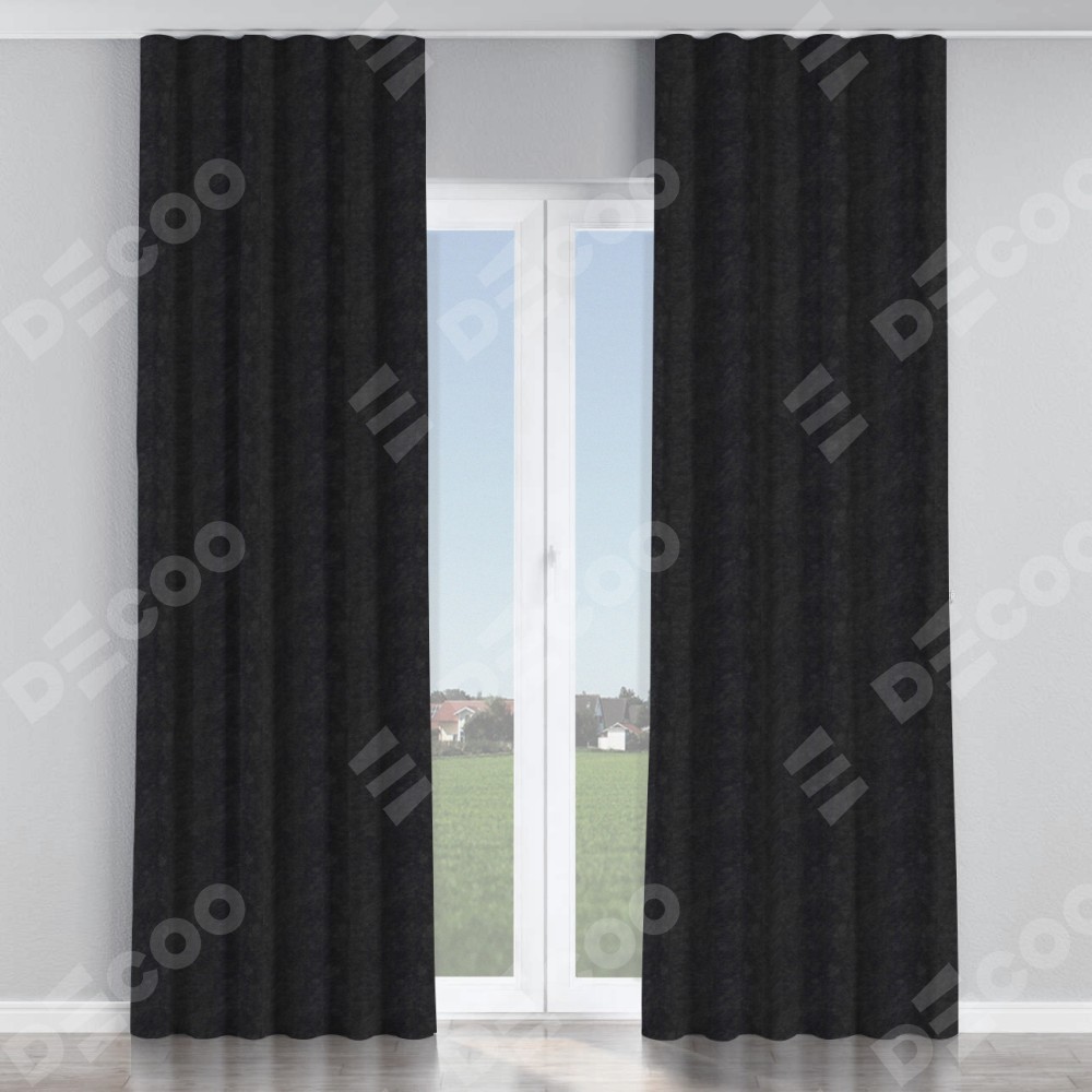 Комплект прямых штор, от производителя «Cortin», пошиты из ткани cotton блэкаут тёмно-серый, артикул ткани 35282. С изнаночной стороны в верхней части штор пристрачивается шторная лента с декоративными складками «Волна». Для создания элегантных складок прямые шторы шьются по стандарту с коэффициентом 1:2 (на 100 см. ширины проёма 200 см. ширины ткани).