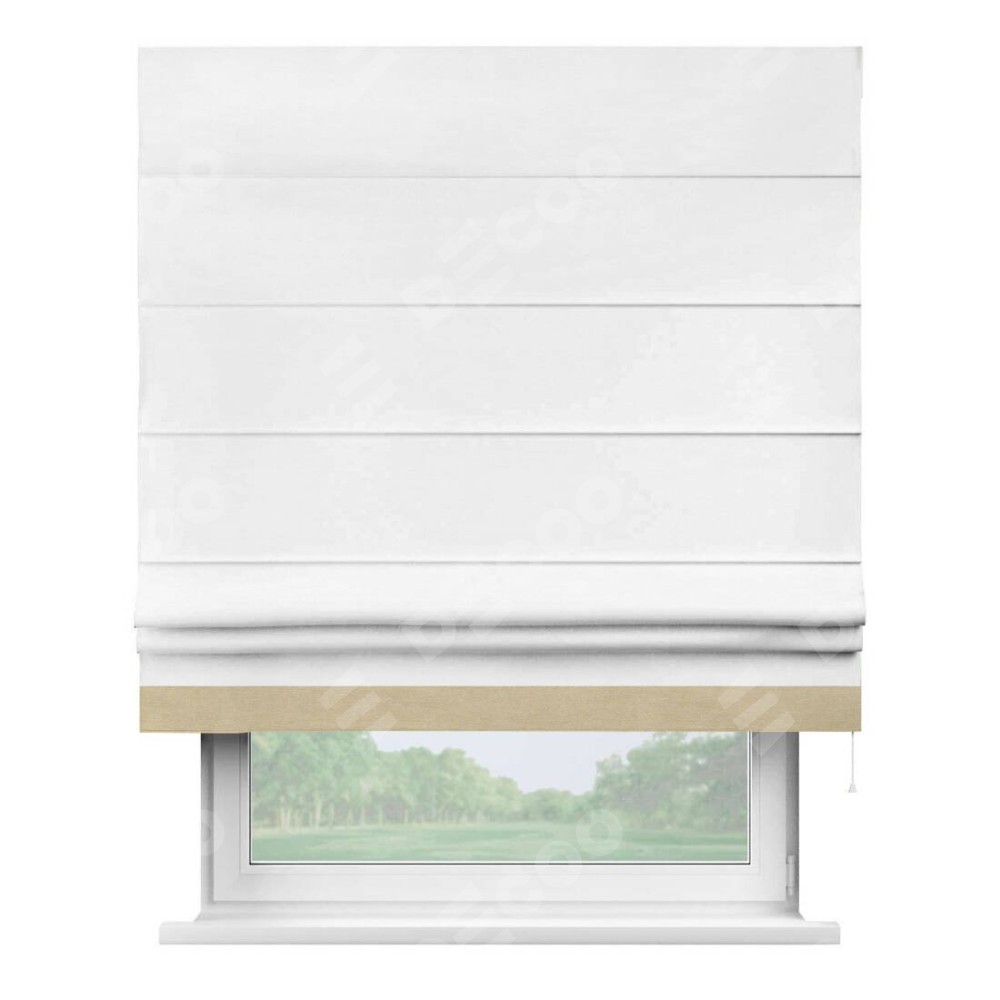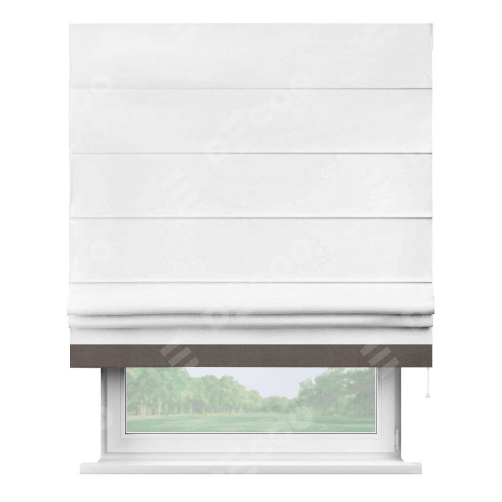 Римская штора производителя «Cortin», используется для проёма, пошита из ткани вельвет дымчато-белый, артикул ткани 85535. Отделка шторы кантом «Джестер», ткань для канта используется из вельвета разной расцветки на выбор. Имеет универсальный механизм и подходит для монтажа: на потолок, на стену и в нишу.