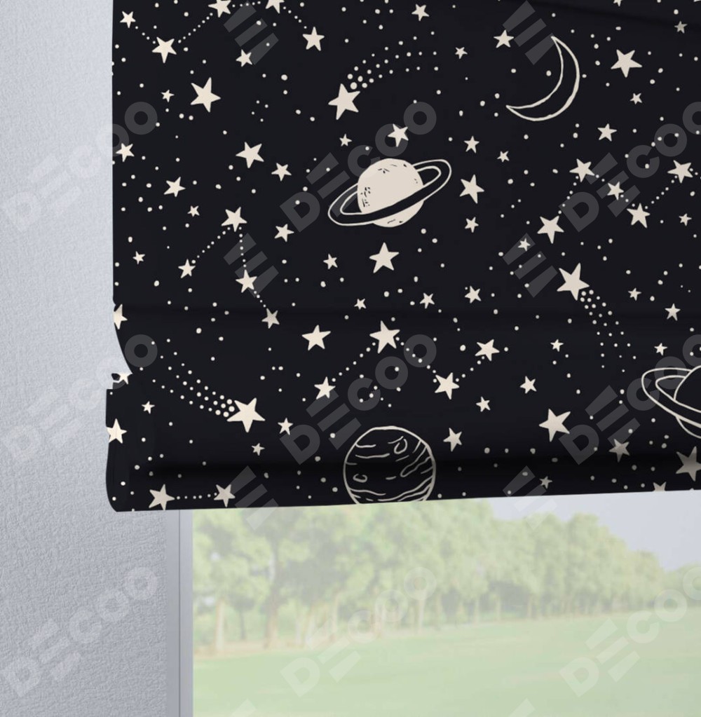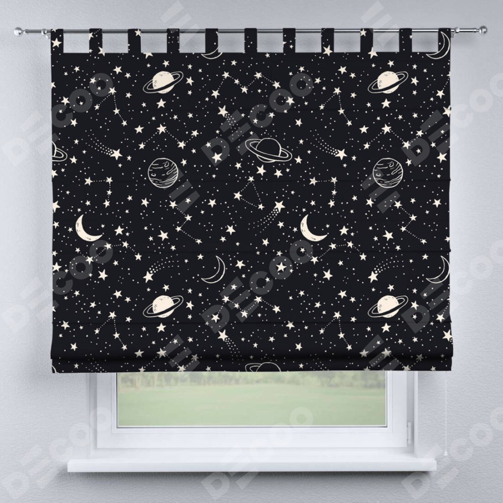 Римская штора производителя «Cortin», используется для проёма, пошита из ткани блэкаут с нанесением сублимационной печати «Глубокий космос». Данная модель пошита на петлях, комплектуется на выбор круглым карнизом и подходит для монтажа на стену. Римская штора на петлях имеет простую систему регулировки высоты, отличительным преимуществом данной модели является простой способ монтажа. Достаточно повесить ее на трубу и штора готова!
