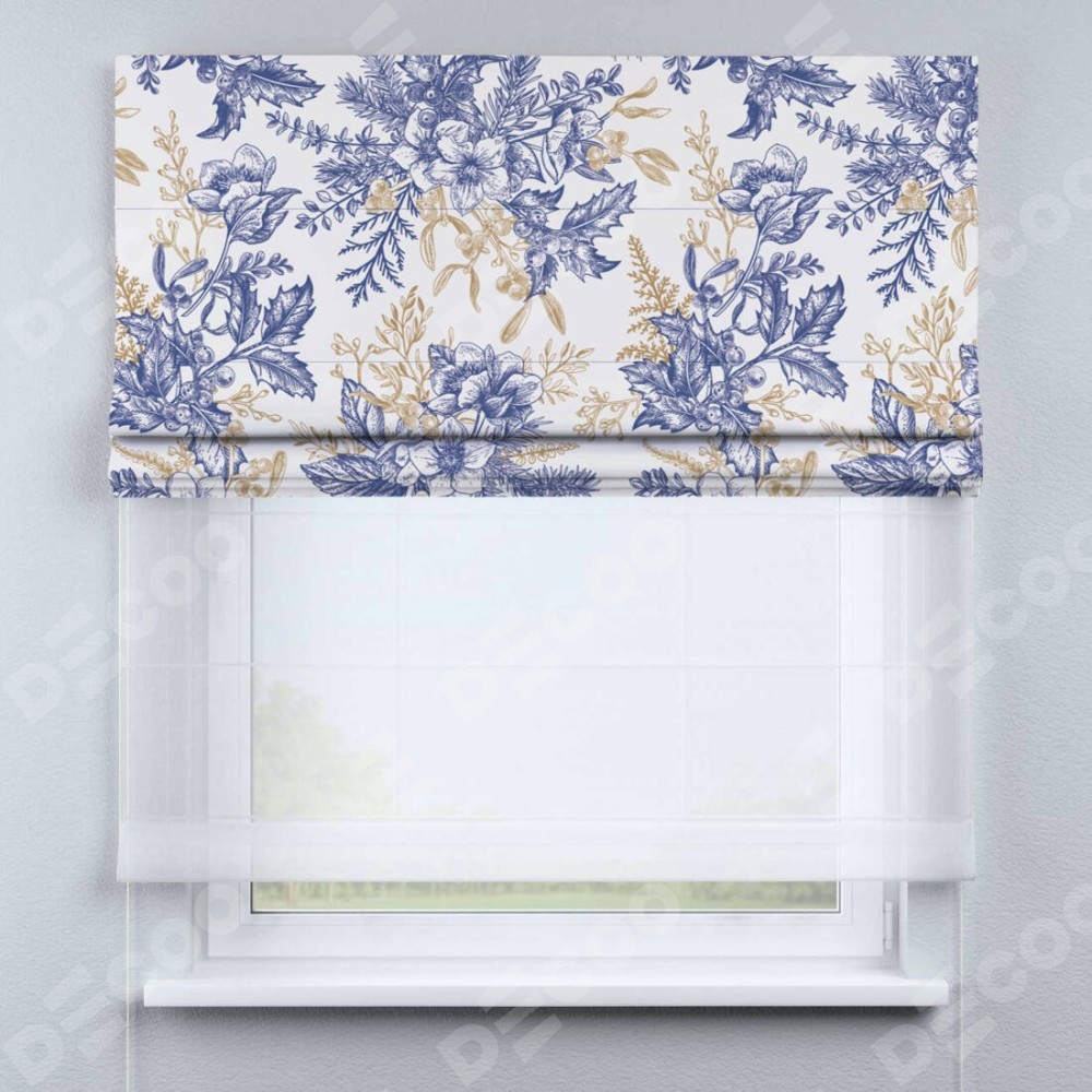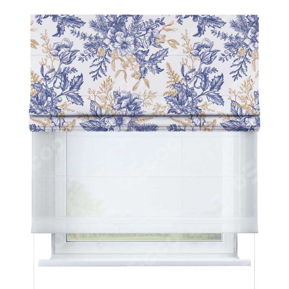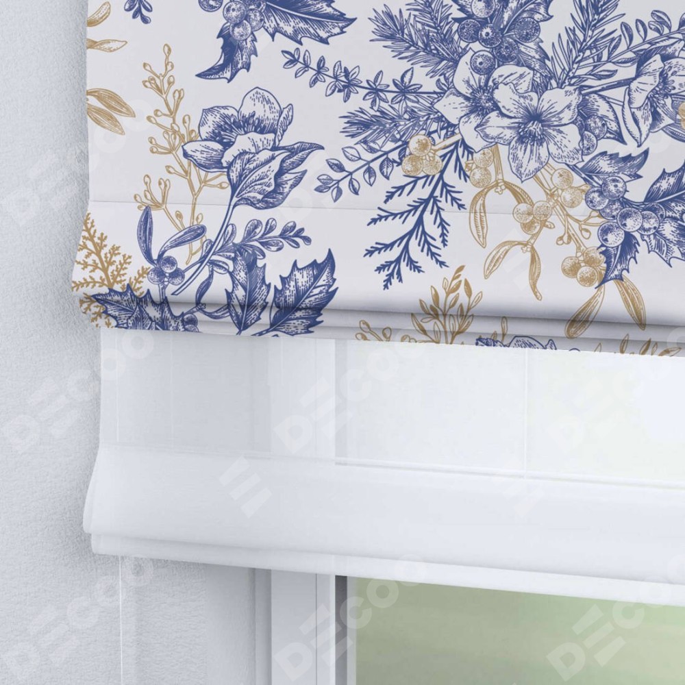 Римская штора день-ночь производителя «Cortin», используется для проёма, пошита из двух полотен, с лицевой блэкаут с нанесением сублимационной печати «Зимний сад», вторая ткань тюль (по стандарту комплектуется тюль белого цвета артикул V-01). Имеет универсальный механизм и подходит для монтажа: на потолок, на стену и в нишу.
