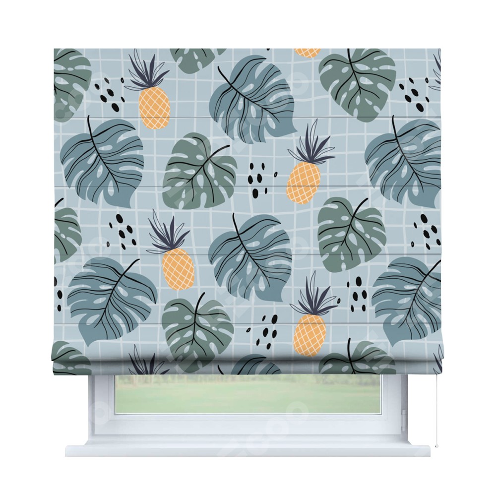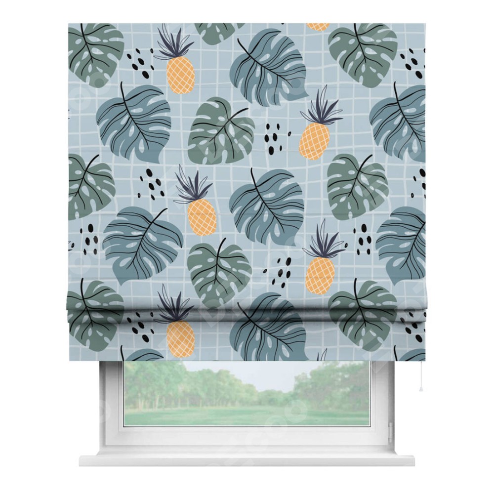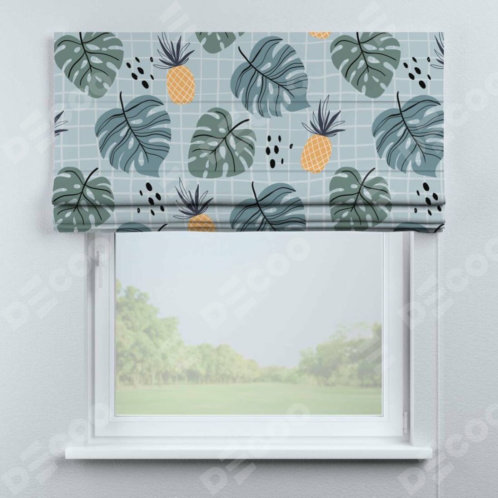 Римская штора «Кортин» для проема «Ананасы и листья монстеры»