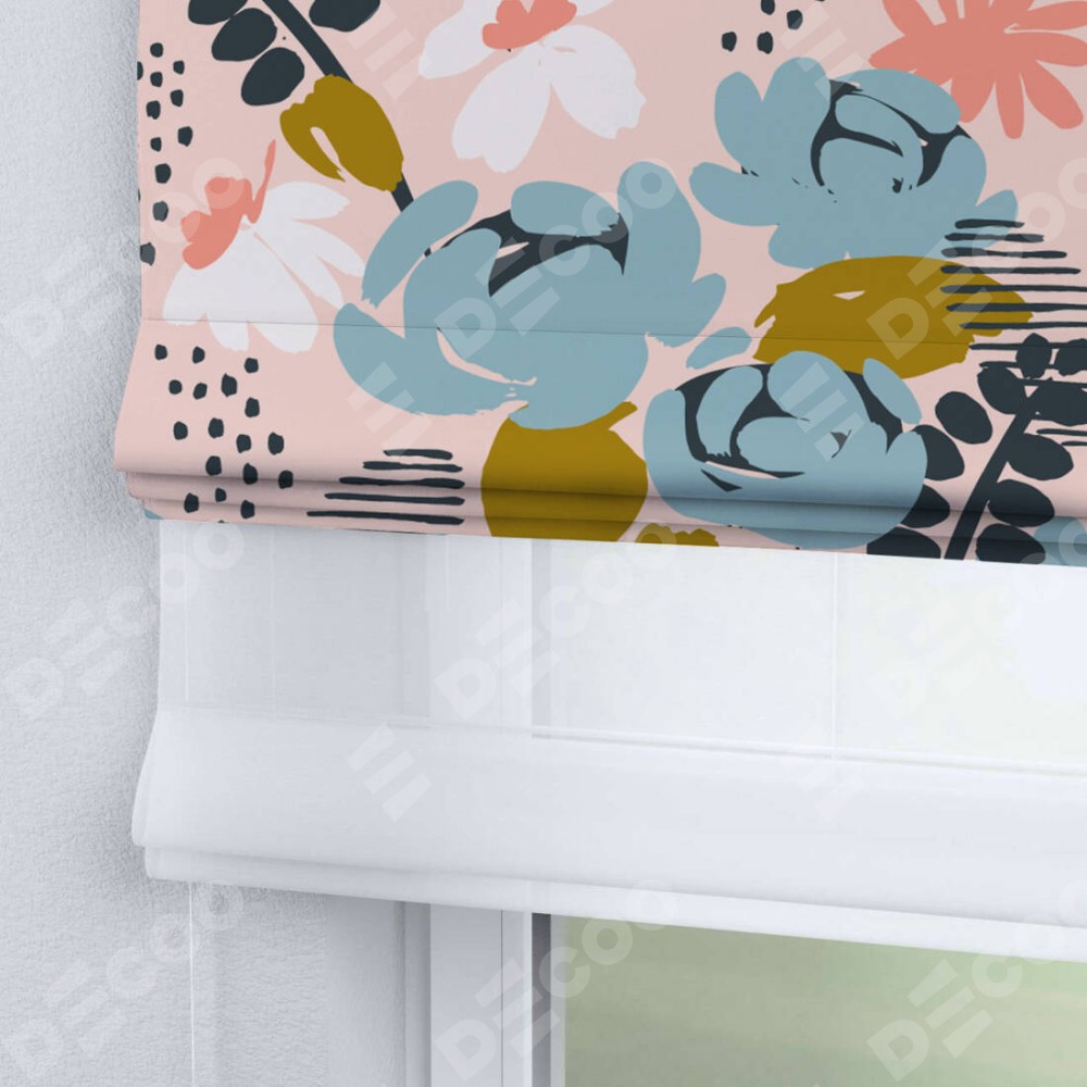 Римская штора день-ночь производителя «Cortin», используется для проёма, пошита из двух полотен, с лицевой блэкаут с нанесением сублимационной печати «Дивные цветы», вторая ткань тюль (по стандарту комплектуется тюль белого цвета артикул V-01). Имеет универсальный механизм и подходит для монтажа: на потолок, на стену и в нишу.