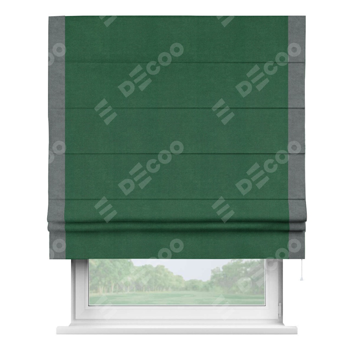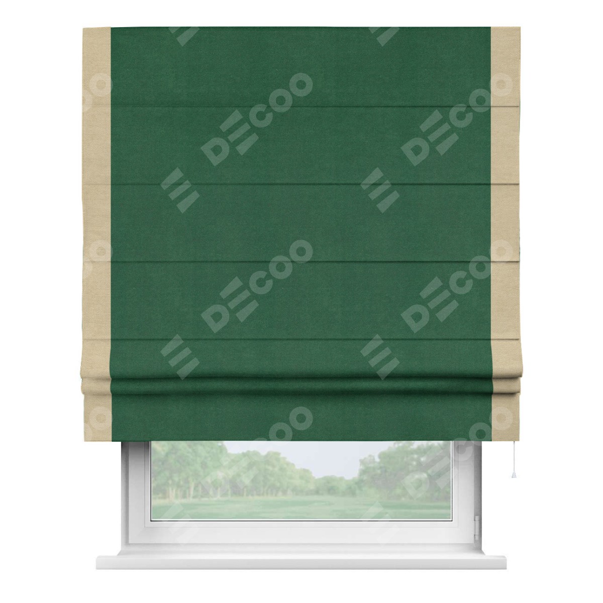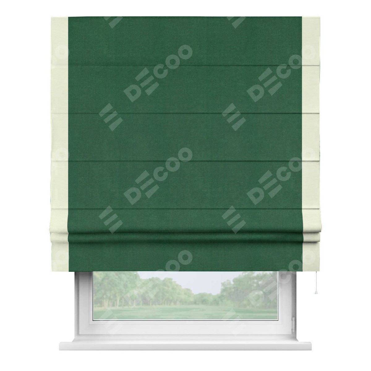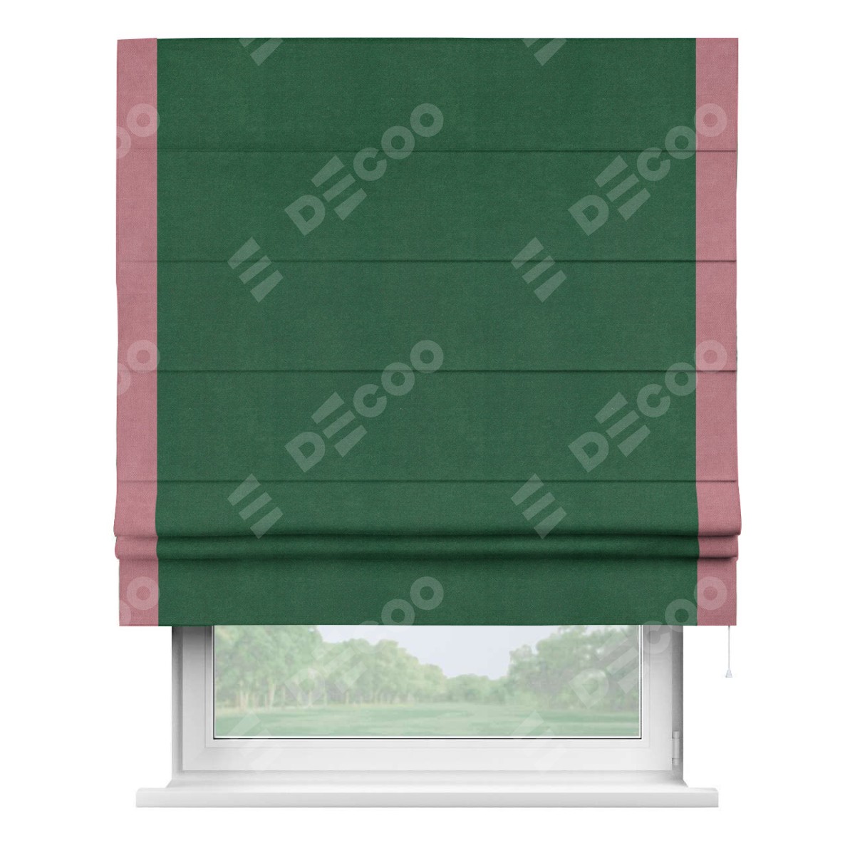 Римская штора «Кортин» с кантом Стрим Дуо, для проема, ткань вельвет зеленый