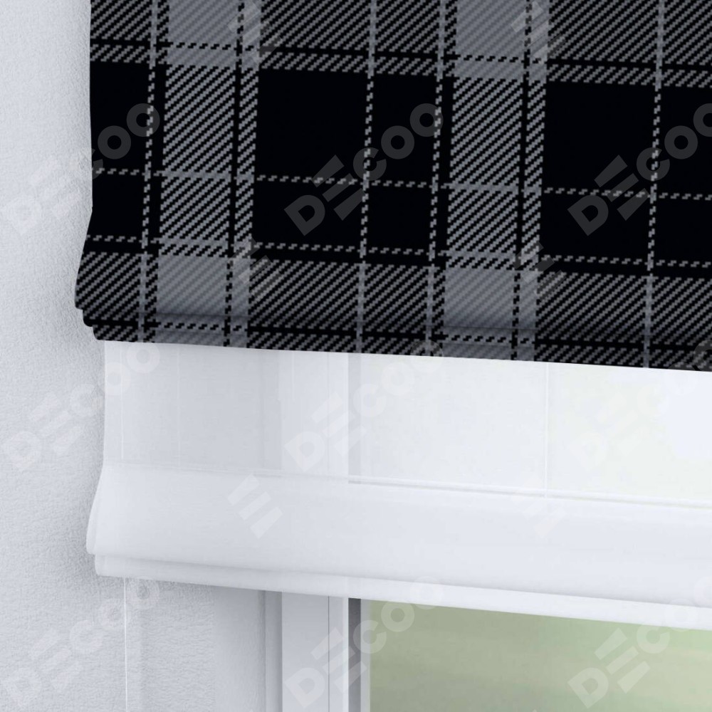 Римская штора день-ночь производителя «Cortin», используется для проёма, пошита из двух полотен, с лицевой блэкаут с нанесением сублимационной печати «Стильная клетка», вторая ткань тюль (по стандарту комплектуется тюль белого цвета артикул V-01). Имеет универсальный механизм и подходит для монтажа: на потолок, на стену и в нишу.
