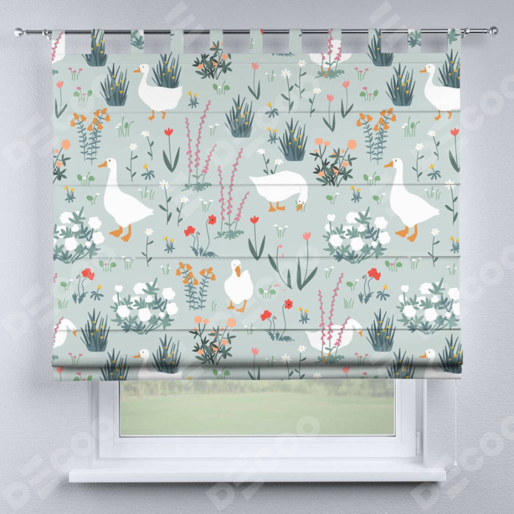Римская штора производителя «Cortin», используется для проёма, пошита из ткани блэкаут с нанесением сублимационной печати «Гуси на лугу». Данная модель пошита на петлях, комплектуется на выбор круглым карнизом и подходит для монтажа на стену. Римская штора на петлях имеет простую систему регулировки высоты, отличительным преимуществом данной модели является простой способ монтажа. Достаточно повесить ее на трубу и штора готова!