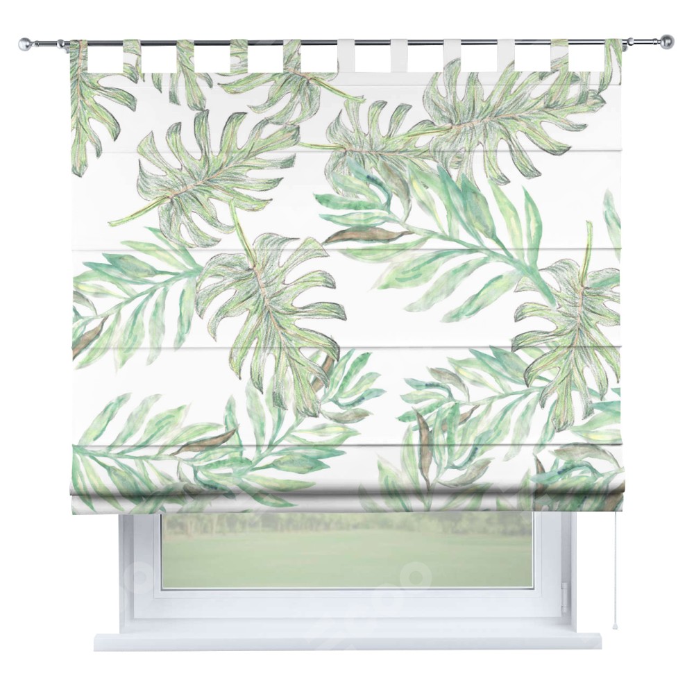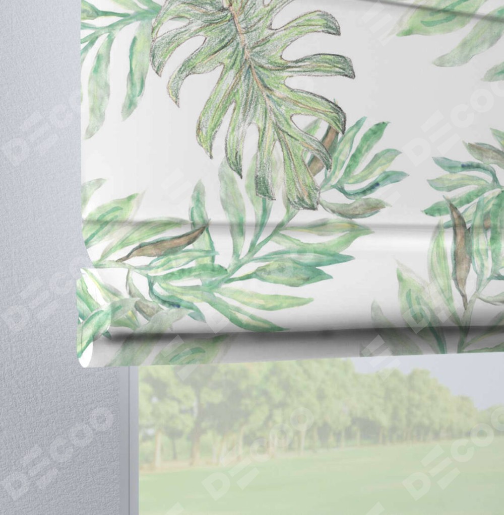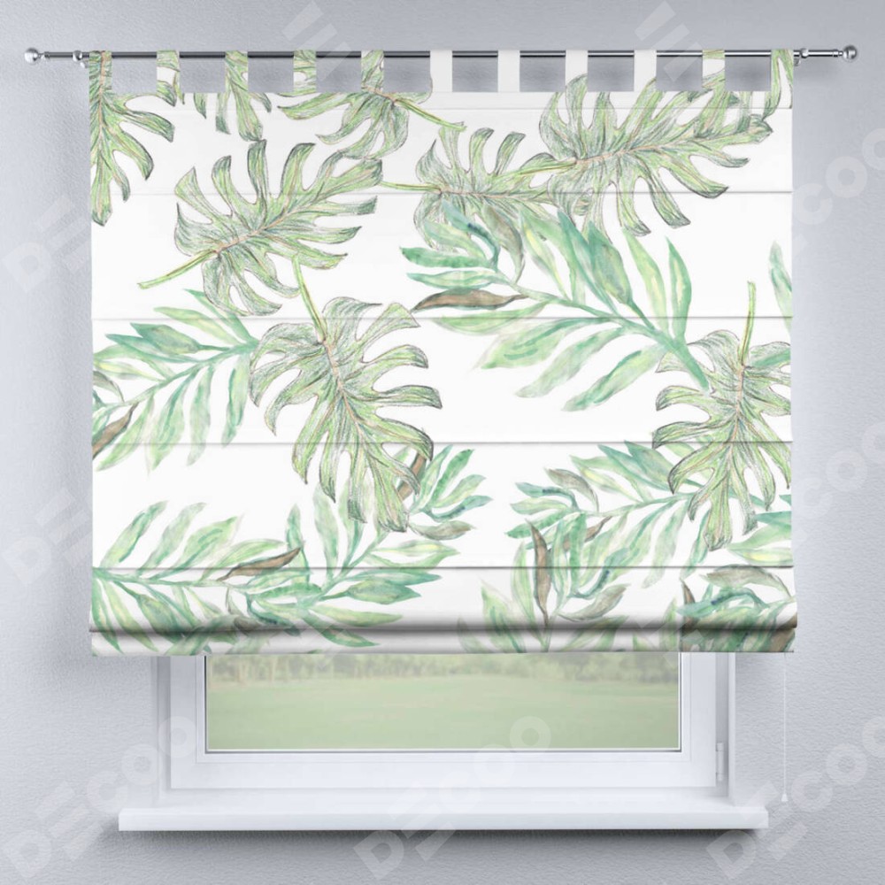 Римская штора производителя «Cortin», используется для проёма, пошита из ткани блэкаут с нанесением сублимационной печати «Листья монстеры». Данная модель пошита на петлях, комплектуется на выбор круглым карнизом и подходит для монтажа на стену. Римская штора на петлях имеет простую систему регулировки высоты, отличительным преимуществом данной модели является простой способ монтажа. Достаточно повесить ее на трубу и штора готова!