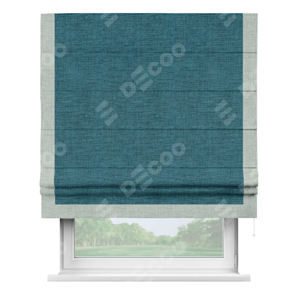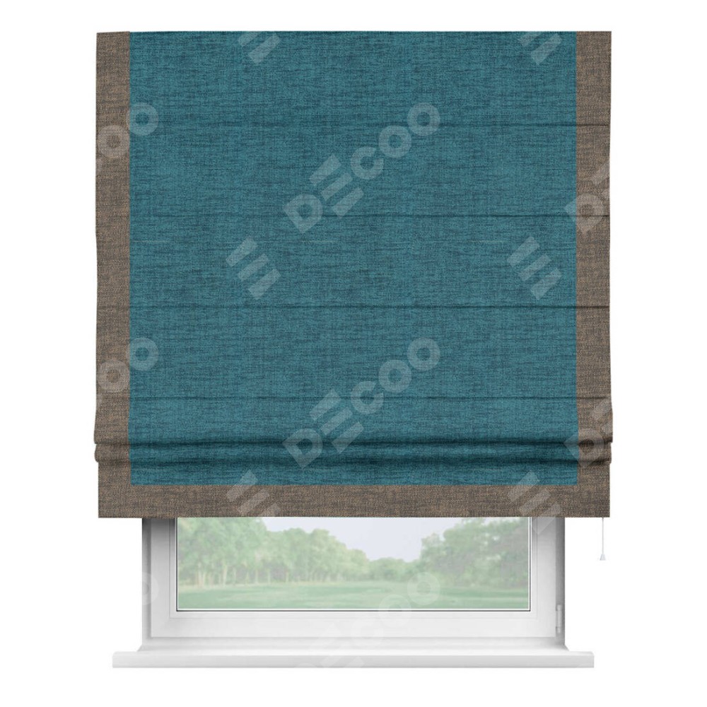 Римская штора «Кортин» с кантом Виктория, для проема, ткань рогожка димаут, синий