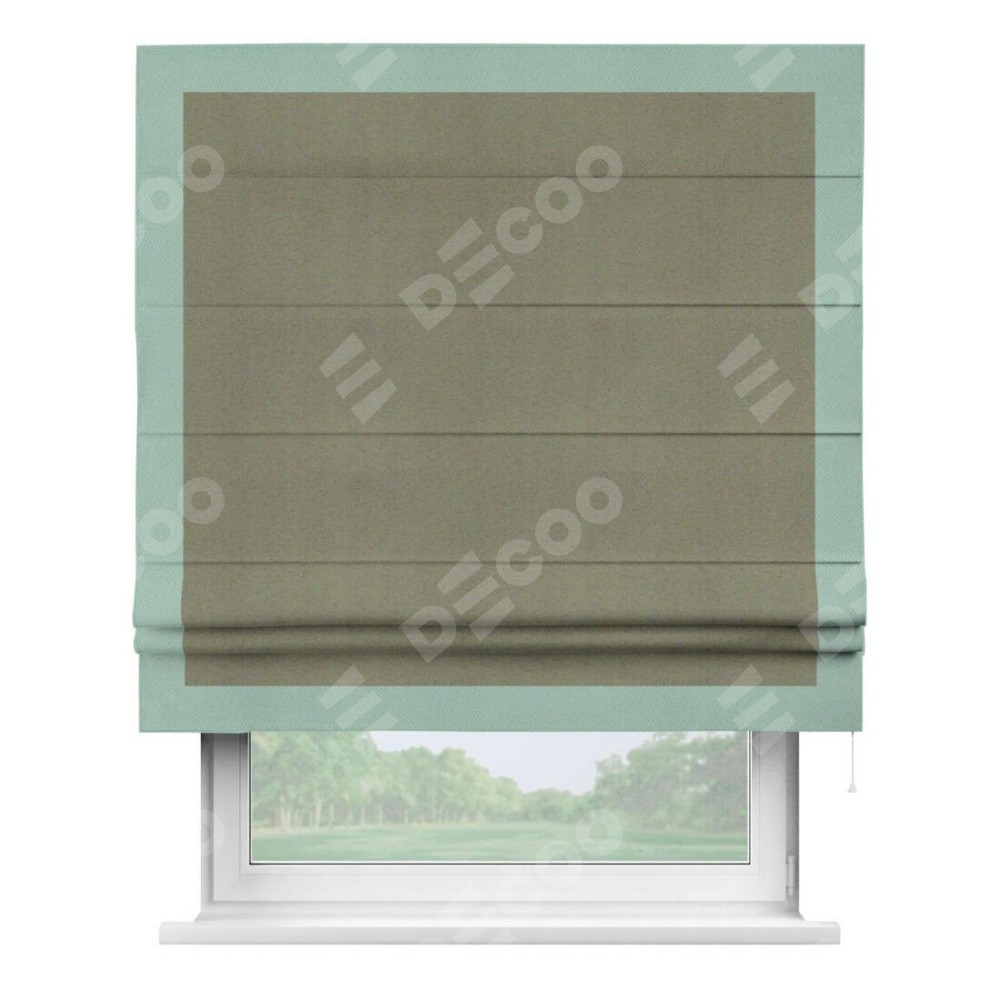 Римская штора «Кортин» с кантом Чесс, для проема, ткань блэкаут однотонный серо-коричневый