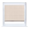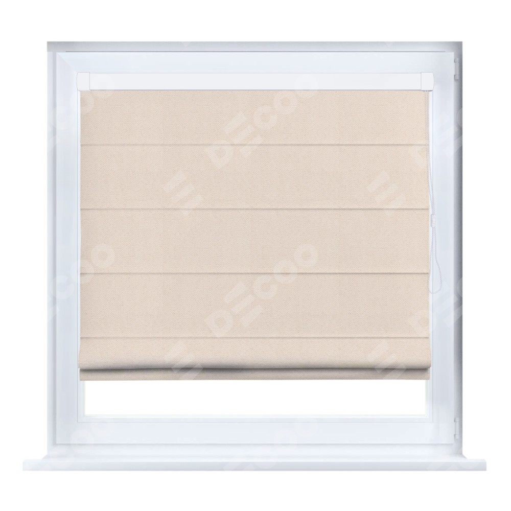 Римская штора кассетного типа, производителя «Cortin», устанавливается только на пластиковые окна и прилегает к стеклопакету, пошита из ткани из ткани блэкаут тиснение с блеском розовая пудра, артикул 34632. Изнаночная сторона материала черного цвета, что обеспечивает необходимую светонепроницаемость.