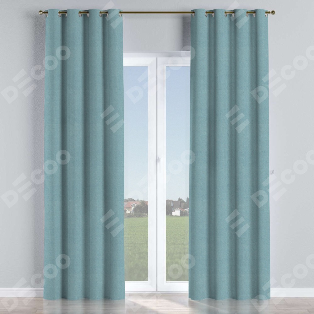 Комплект прямых штор, от производителя «Cortin», пошиты из ткани блэкаут с блеском синий, артикул ткани 34625. Обратная сторона основного материала черного цвета, что обеспечивает необходимую светонепроницаемость. Данная модель пошита на люверсах, комплектуется на выбор круглым карнизом и подходит для монтажа на стену или потолок. Прямые шторы на люверсах шьются по стандарту с коэффициентом 1/2 (на 100 см. ширины проёма 200 см. ширины ткани), отличительным преимуществом данной модели является простой способ монтажа. Достаточно повесить ее на трубу и штора готова!