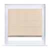 Римская штора производителя «Cortin», устанавливается на створку окна, пошита из ткани блэкаут тиснение с блеском бежевый, артикул 34627. Изнаночная сторона материала черного цвета, что обеспечивает необходимую светонепроницаемость. Штора шьётся по индивидуальным размерам, для данного типа римской шторы возможная ширина от 35 до 150 см., высота до 250 см.
