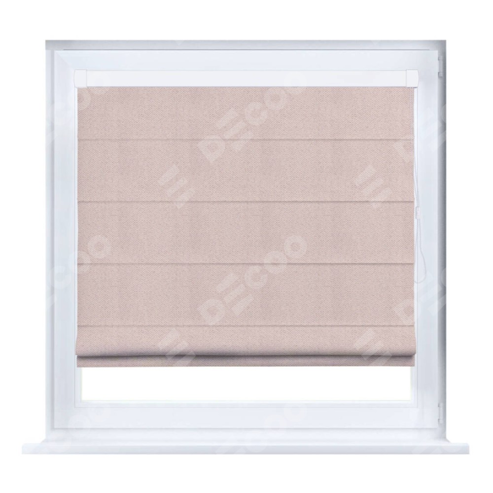 Римская штора производителя «Cortin», устанавливается на створку окна, пошита из ткани блэкаут тиснение с блеском сиреневый, артикул 34649. Изнаночная сторона материала черного цвета, что обеспечивает необходимую светонепроницаемость. Штора шьётся по индивидуальным размерам, для данного типа римской шторы возможная ширина от 35 до 150 см., высота до 250 см.