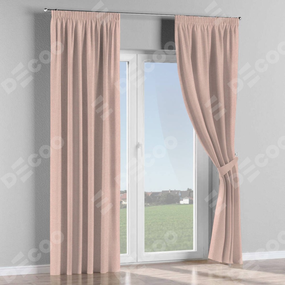 Комплект прямых штор, от производителя «Cortin», пошиты из ткани блэкаут с блеском сиреневый, артикул ткани 34649. С изнаночной стороны в верхней части штор пристрачивается шторная лента с декоративными складками «Карандаш». Обратная сторона основного материала черного цвета, что обеспечивает необходимую светонепроницаемость. Для создания элегантных складок прямые шторы шьются по стандарту с коэффициентом 1:2 (на 100 см. ширины проёма 200 см. ширины ткани).