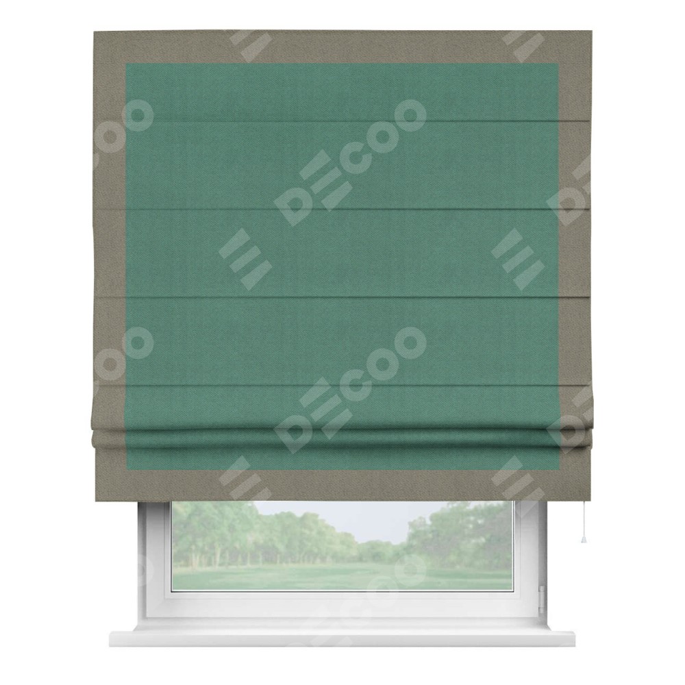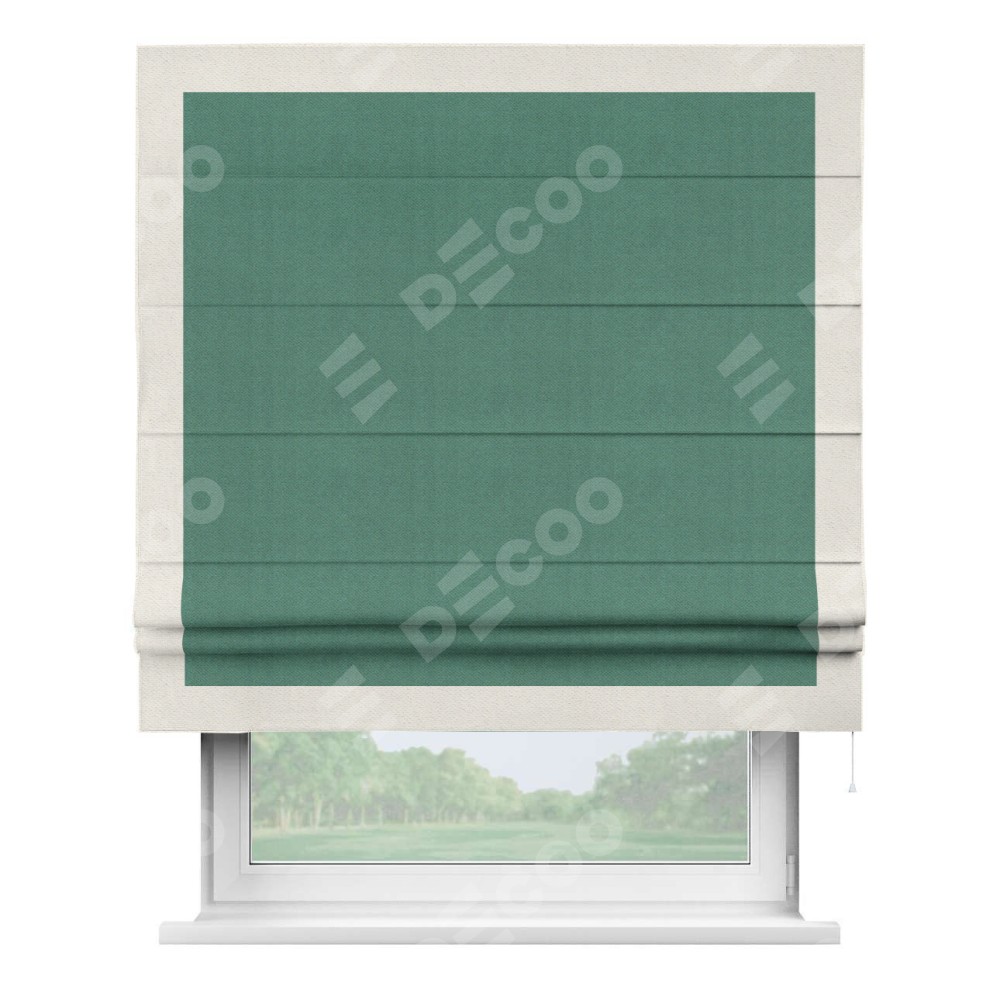 Римская штора «Кортин» с кантом Чесс, для проема, ткань блэкаут с блеском изумрудный
