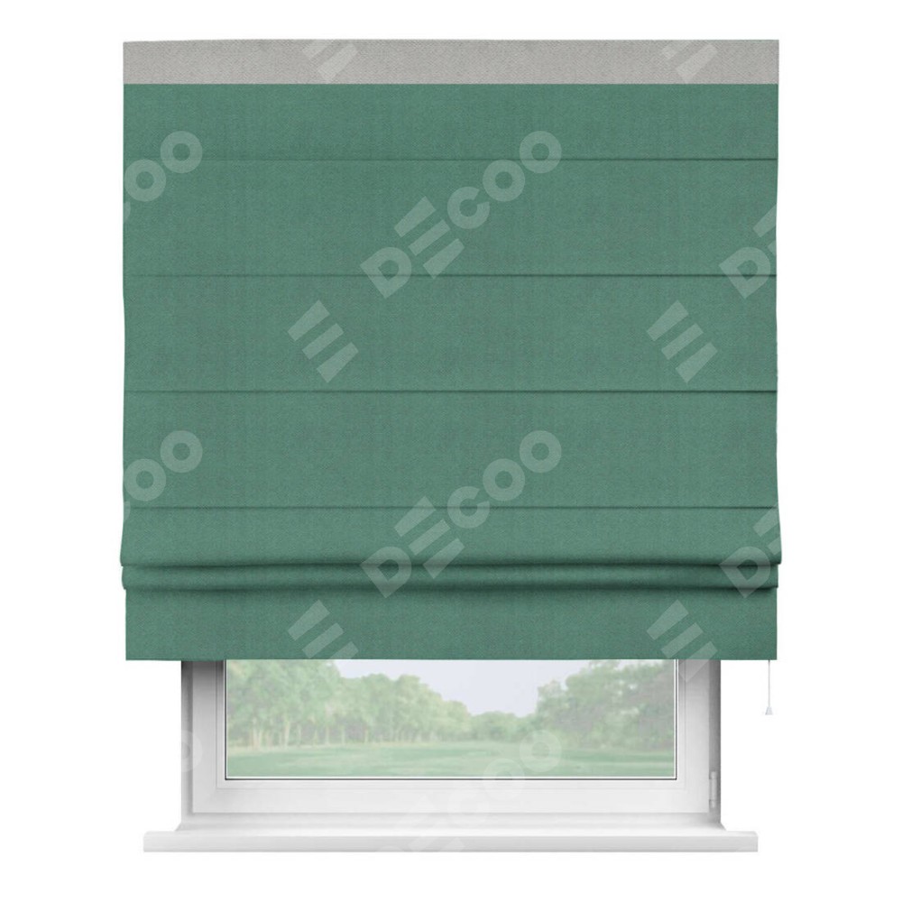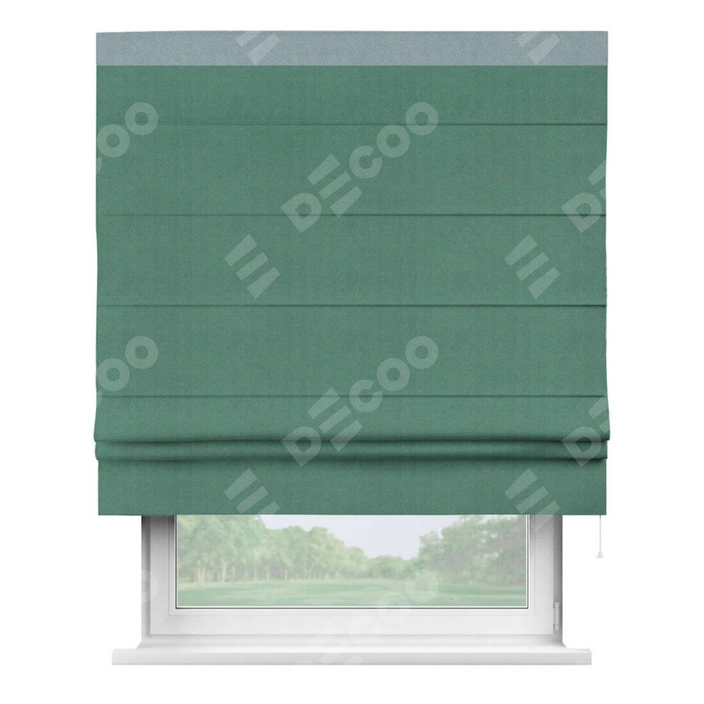 Римская штора «Кортин» с кантом Кинг, для проема, ткань блэкаут с блеском изумрудный