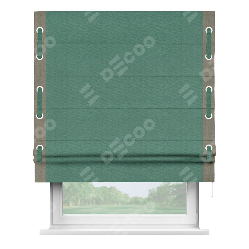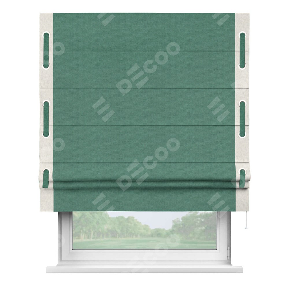 Римская штора «Кортин» с кантом Стрим Дуо (люверсы с пояском), для проема, ткань блэкаут с блеском изумрудный