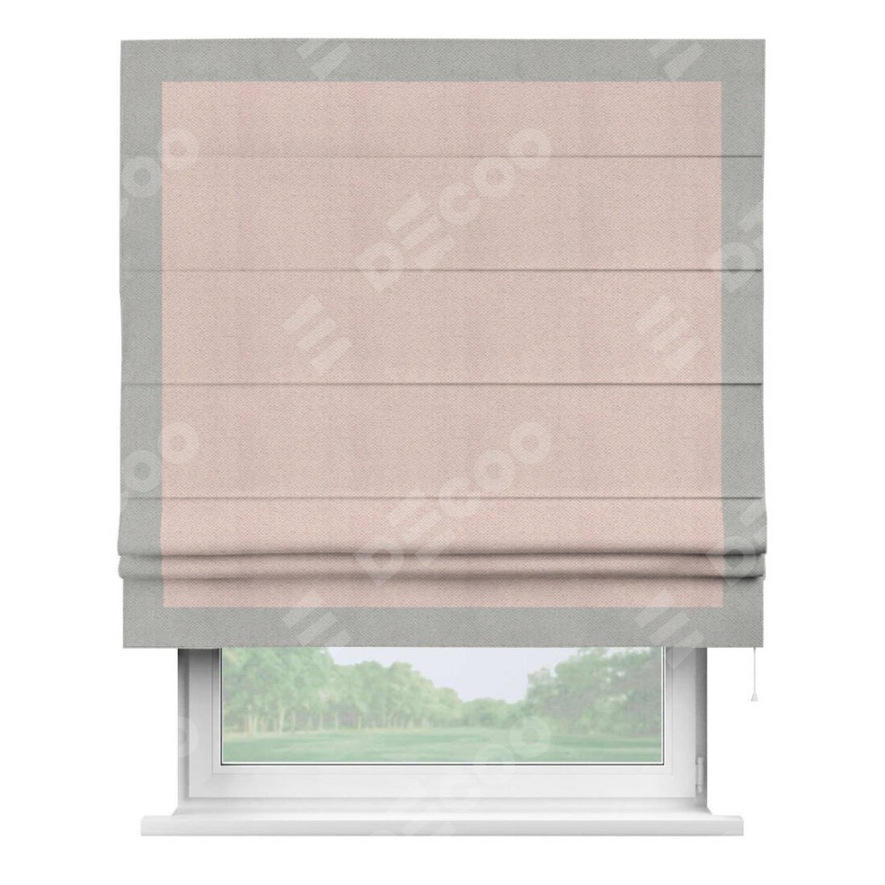 Римская штора производителя «Cortin», используется для проёма, пошита из ткани блэкаут с блеском сиреневый, артикул 34649. Отделка шторы кантом «Чесс», ткань для канта используется из блэкаута с блеском разной расцветки на выбор. Изнаночная сторона материала черного цвета, что обеспечивает необходимую светонепроницаемость. Имеет универсальный механизм и подходит для монтажа: на потолок, на стену и в нишу.
