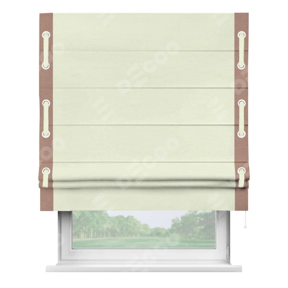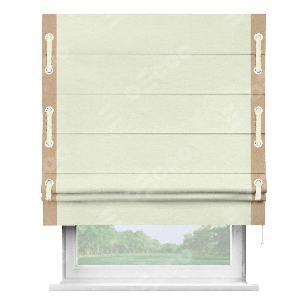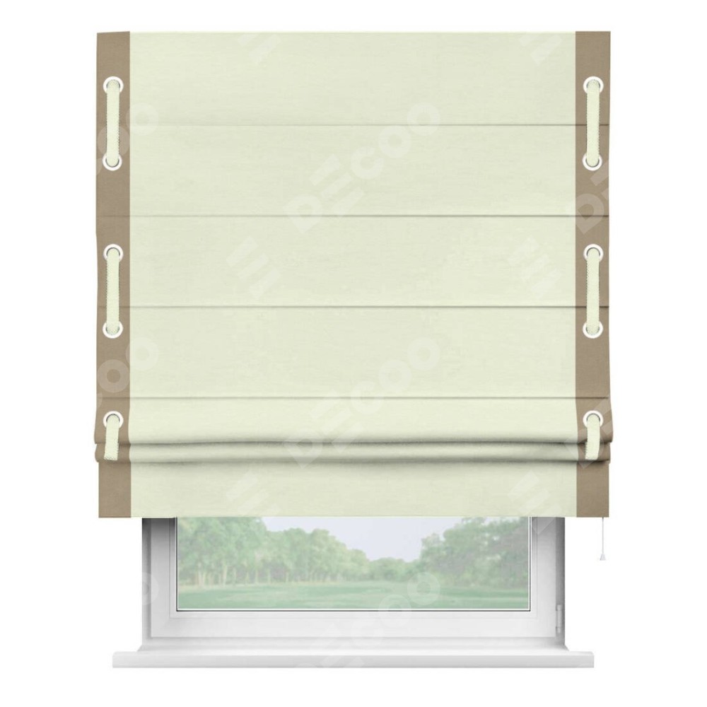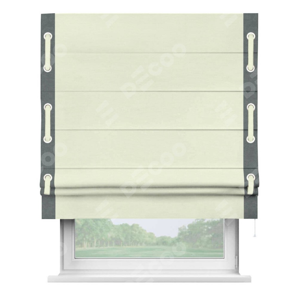 Римская штора «Кортин» с кантом Стрим Дуо (люверсы с пояском), для проема, ткань вельвет молочный