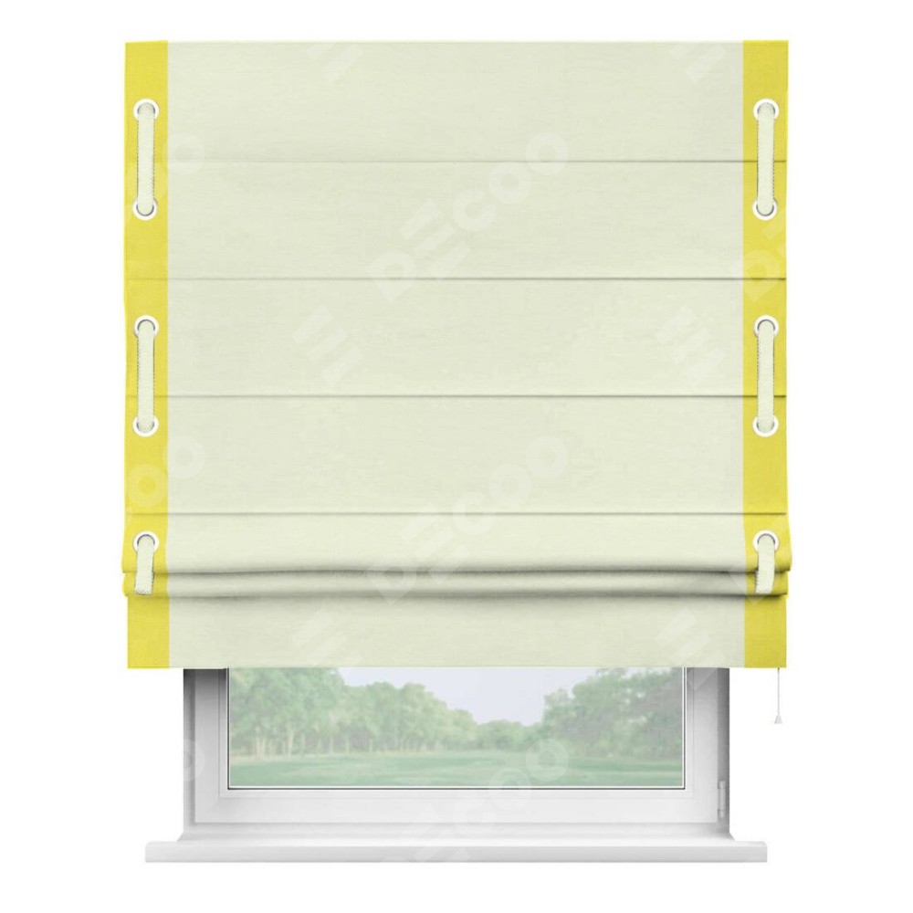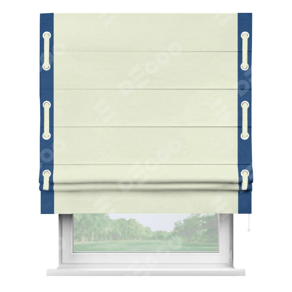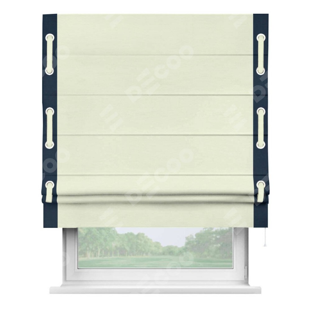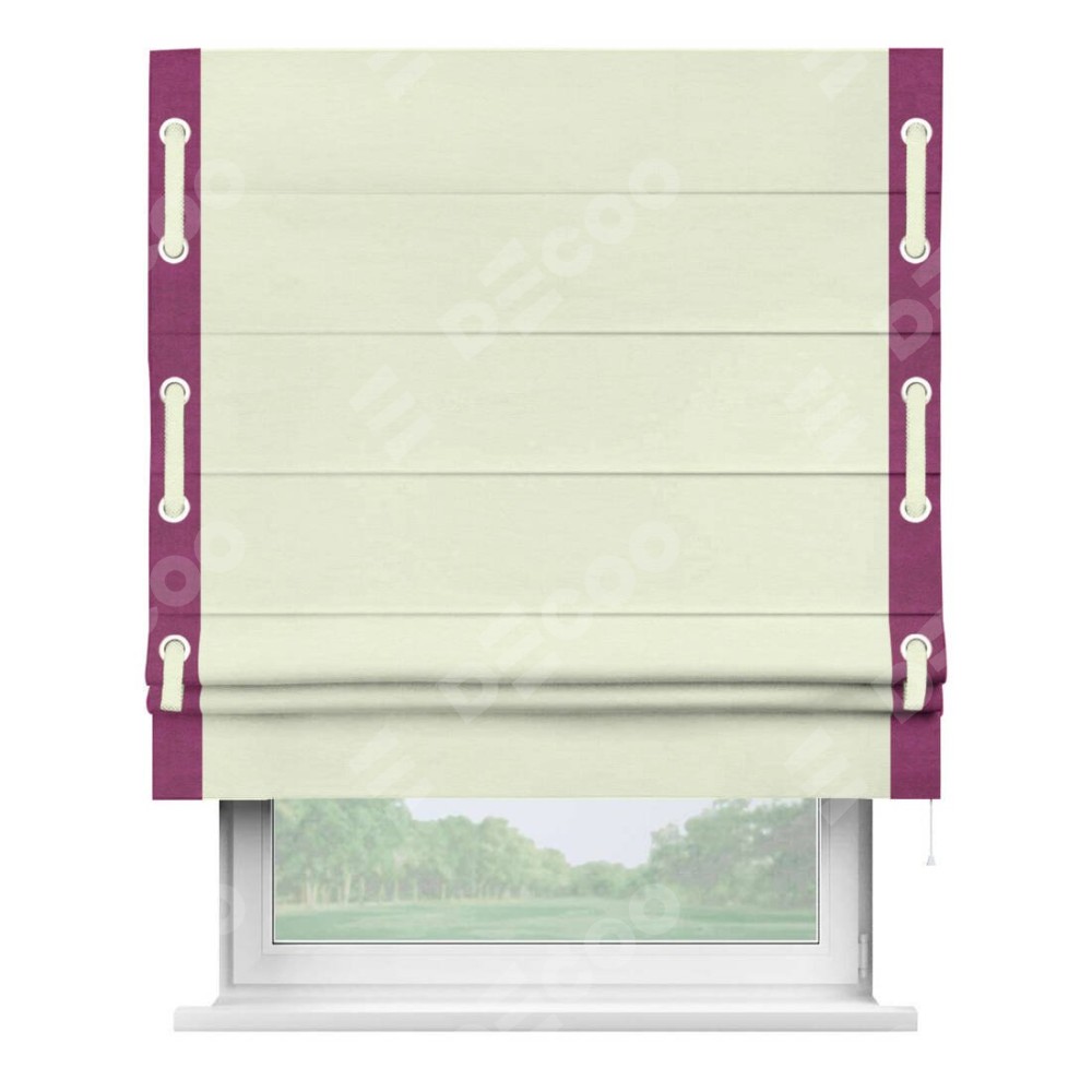 Римская штора «Кортин» с кантом Стрим Дуо (люверсы с пояском), для проема, ткань вельвет молочный