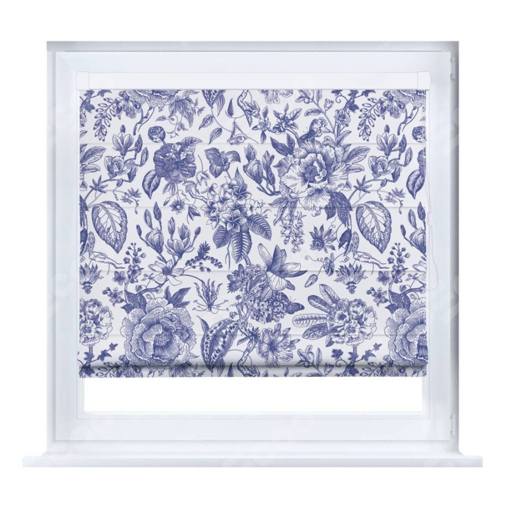 Римская штора производителя «Cortin», устанавливается на створку окна, пошита из ткани блэкаут с нанесением сублимационной печати «Прованс в синем». Штора шьётся по индивидуальным размерам, для данного типа римской шторы возможная ширина от 35 до 150 см., высота до 250 см.